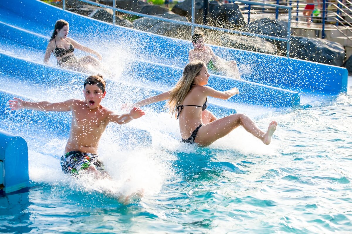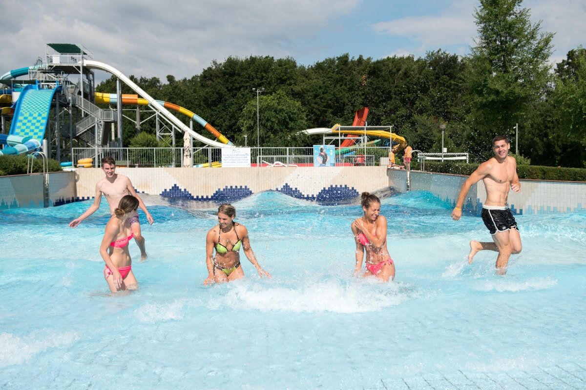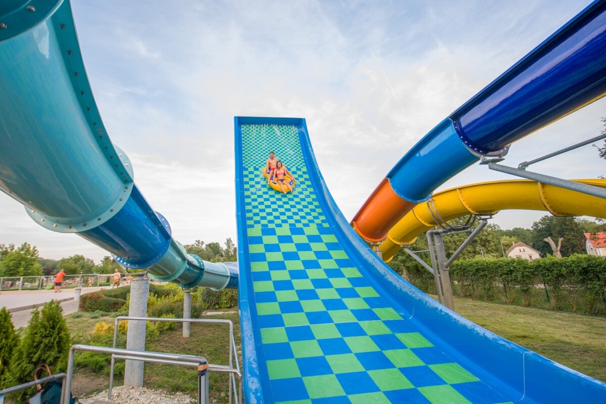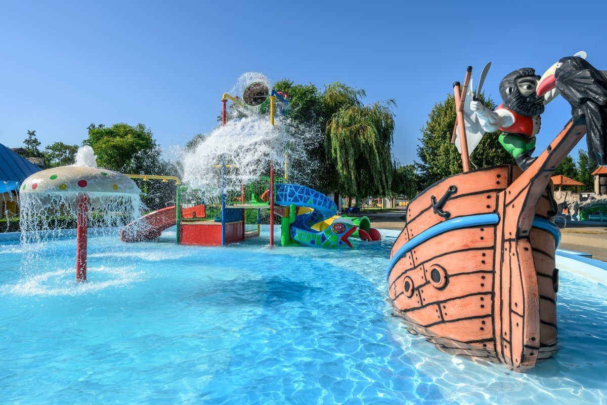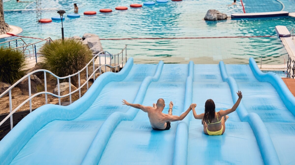 Koupaliště (v provozu od května do září, dle počasí) - 1x venkovní bazén s tobogánem, částečně vyhrazen pro skoky do vody a pro plavání 28 ºC, 1x venkovní dětský bazén s pirátskou lodí a vodním hradem 32 ºC, 1x venkovní baby bazén 32 ºC, 3 venkovní obří skluzavky, 1x venkovní bazén s vlnobitím 28 ºC, 1x venkovní léčebný bazén 36 ºC, 1x dětský zážitkový bazén se skluzavkami.