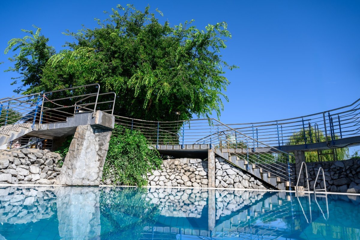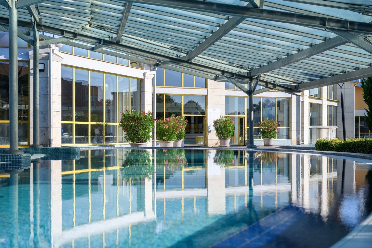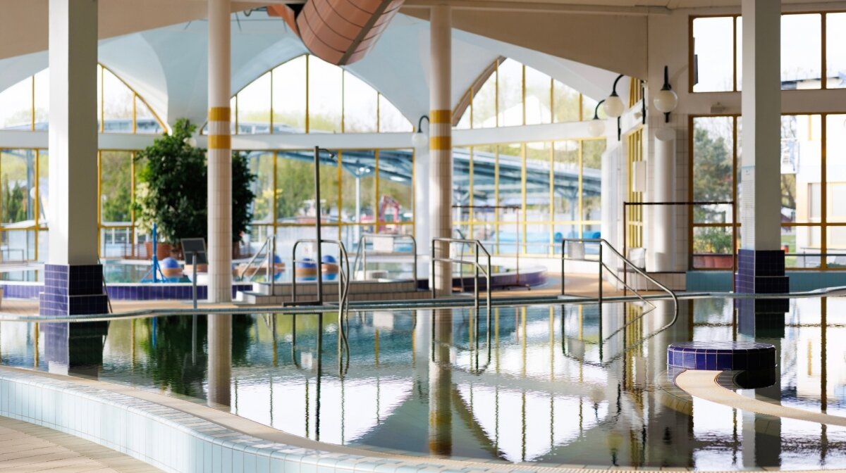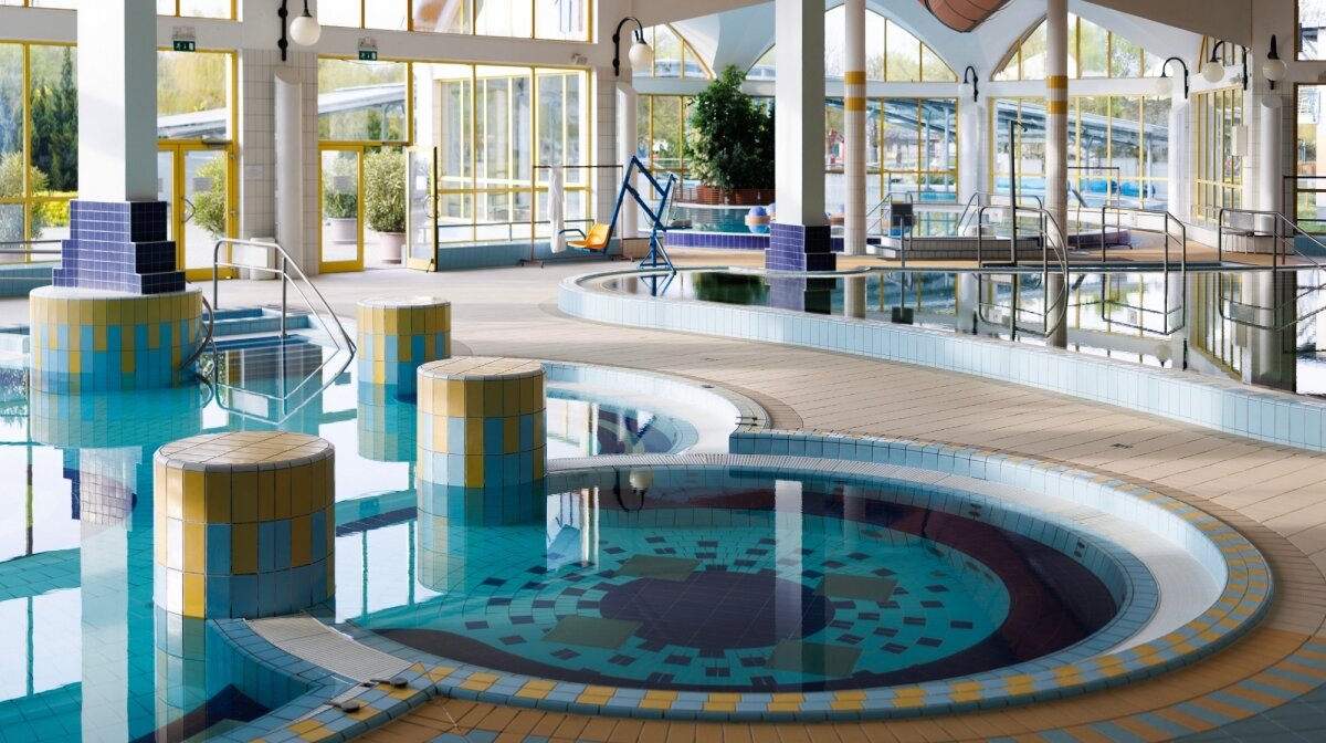 1x krytý léčebný bazén 37 ºC, 1x částečně krytý léčebný bazén 34 – 36 ºC, 1x částečně krytý zážitkový bazén 32 – 34 ºC, vnitřní zážitkový bazén s léčivou vodou 34 – 36 ⁰C.