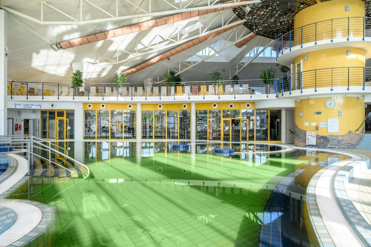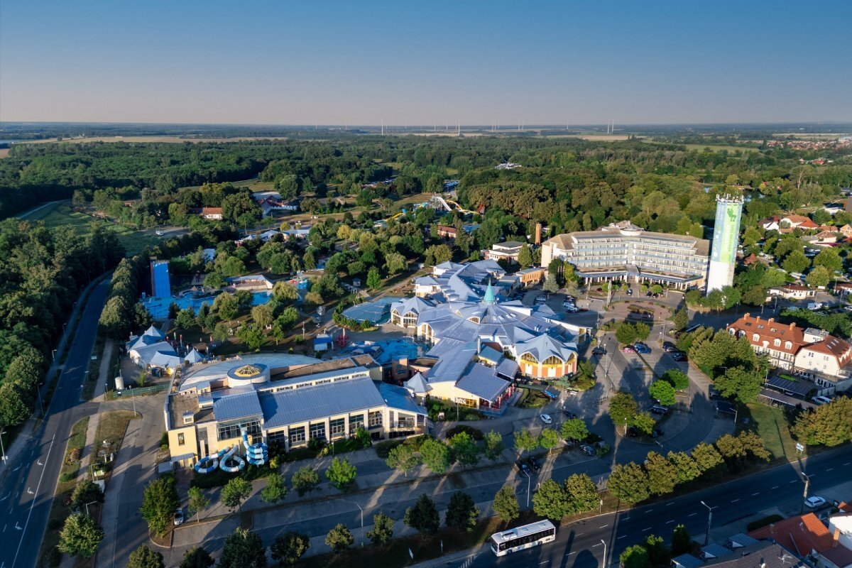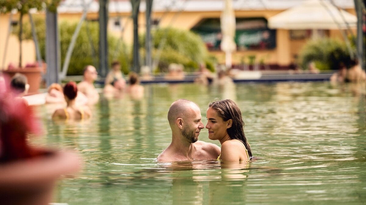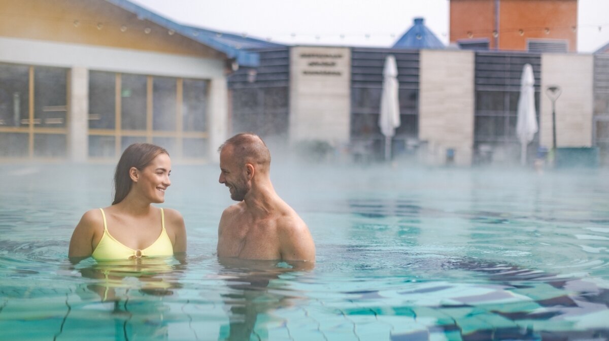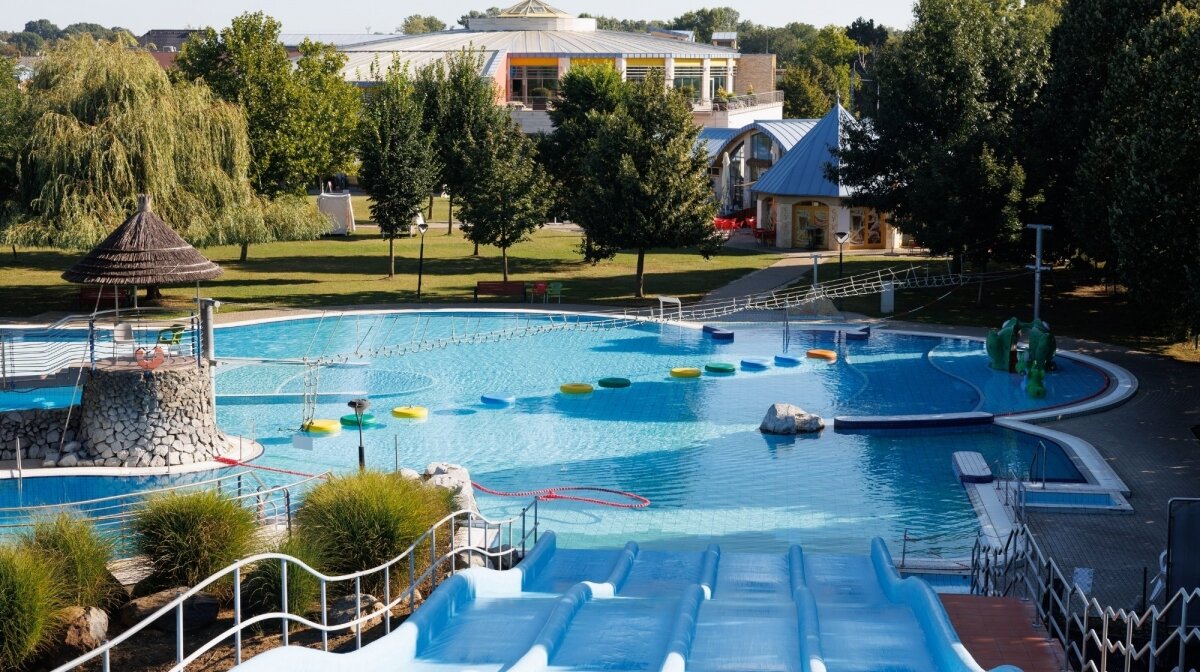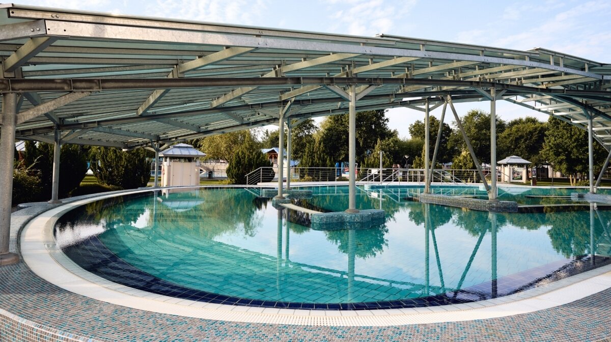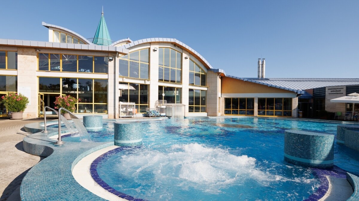 Město se pyšní dvěma vydatnými prameny termální vody. Ten, který zásobuje termální vodou lázně, vyvěrá o teplotě 43 °C z hloubky přibližně 1 300 m, další o teplotě 83 °C s vysokým obsahem minerální soli, je využíván na výrobu termální koupelové soli. Lázeňský areál poskytuje návštěvníkům kromě 3 600 m² vodní plochy i služby wellness a fitness centra a světa sauny.