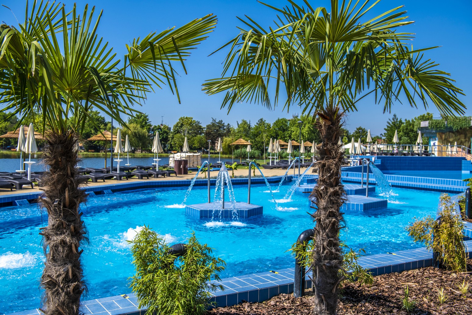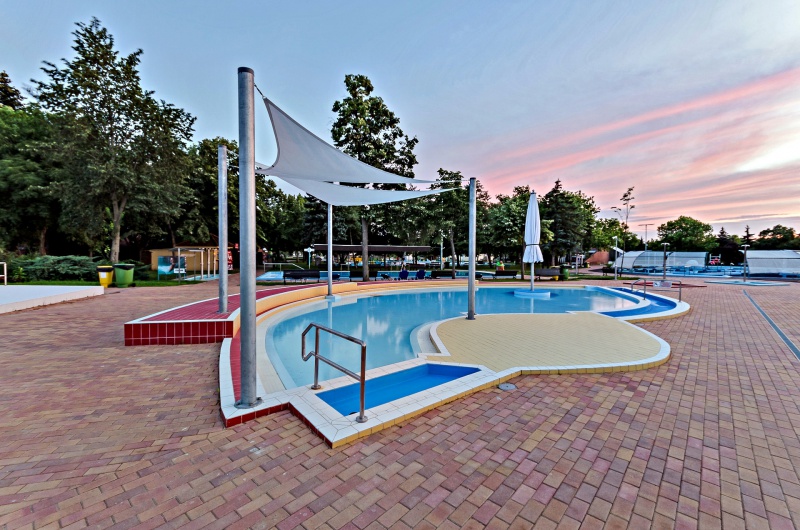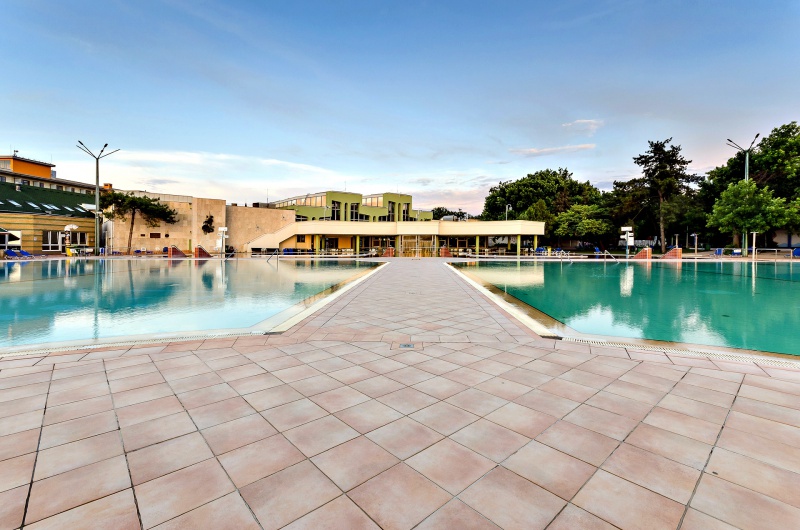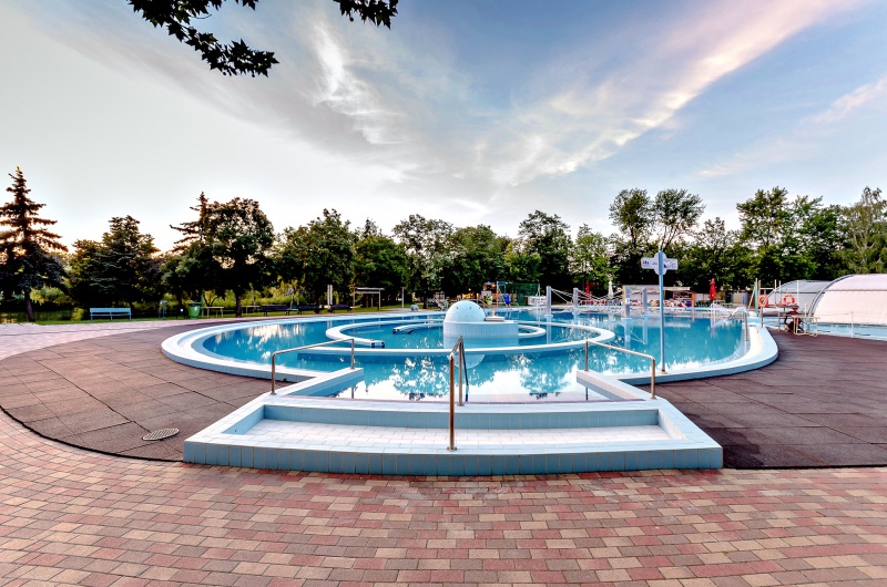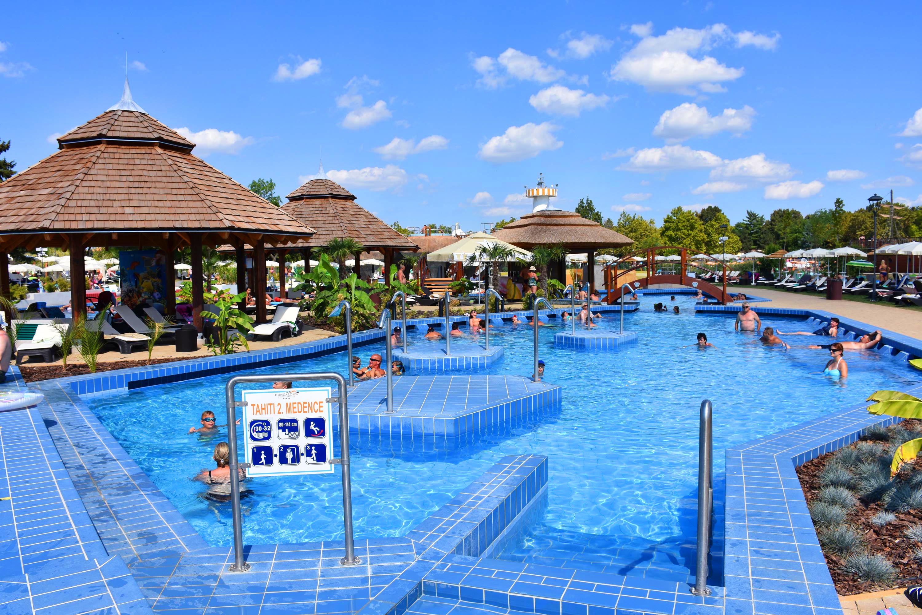 Koupaliště: během léta se zde mohou rekreovat statisíce návštěvníků ve 13 bazénech jak s termální vodou tak sladkou (bazén s vlnobitím, plavecký bazén, perličkový a dětský s pozoruhodnými zážitky). Největší senzací je tzv. středozemní mořská pláž - největší ve střední Evropě. Podívanou skýtá také pirátská loď a zářící věž. Písečná pláž a palmy budí dojem koupání na mořském pobřeží. V květnu a září může být provoz venkovních bazénů omezen z důvodu nestálého počasí.