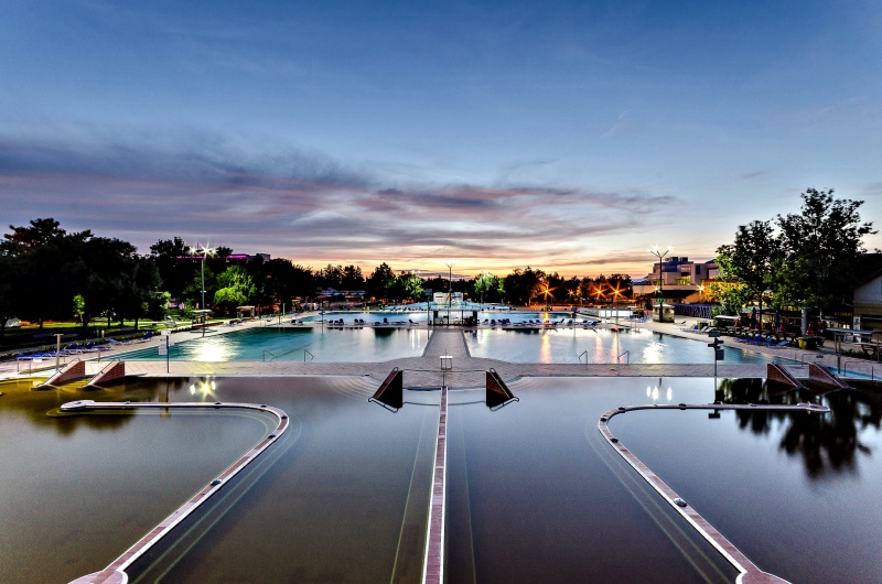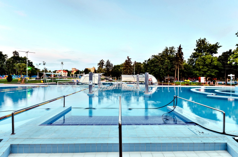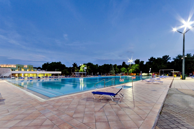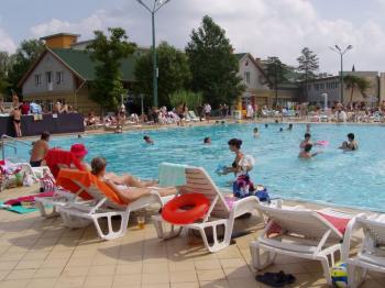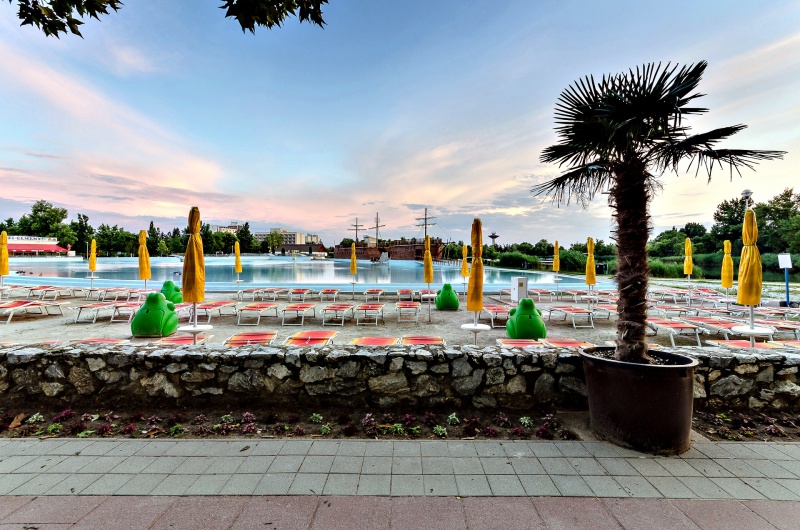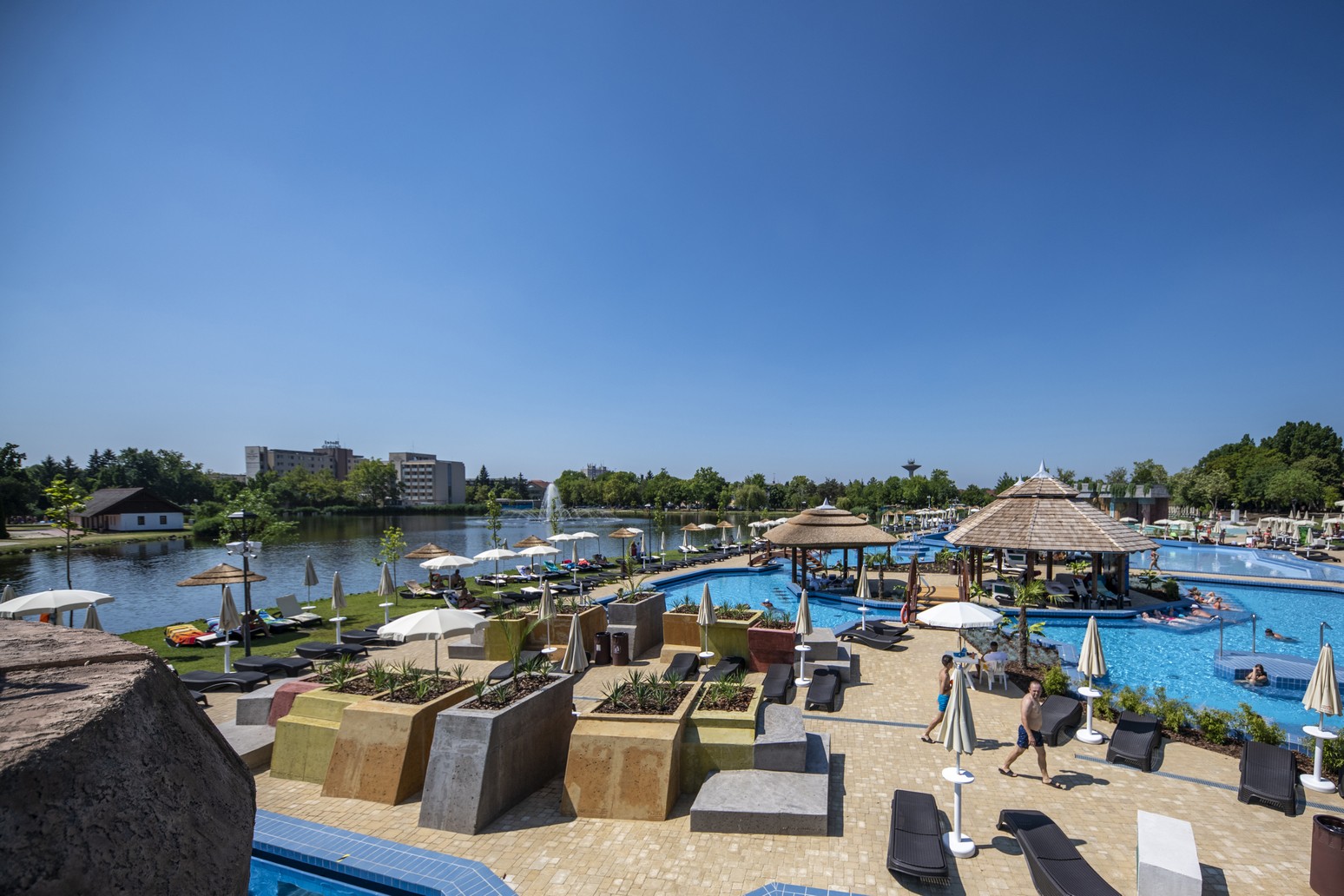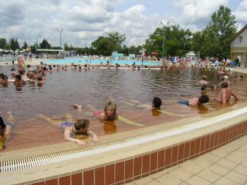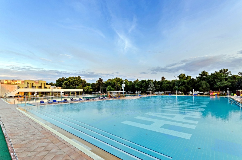 Koupaliště: během léta se zde mohou rekreovat statisíce návštěvníků ve 13 bazénech jak s termální vodou tak sladkou (bazén s vlnobitím, plavecký bazén, perličkový a dětský s pozoruhodnými zážitky). Největší senzací je tzv. středozemní mořská pláž - největší ve střední Evropě. Podívanou skýtá také pirátská loď a zářící věž. Písečná pláž a palmy budí dojem koupání na mořském pobřeží. V květnu a září může být provoz venkovních bazénů omezen z důvodu nestálého počasí.