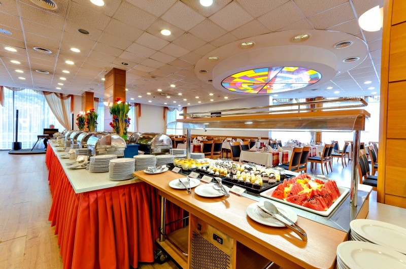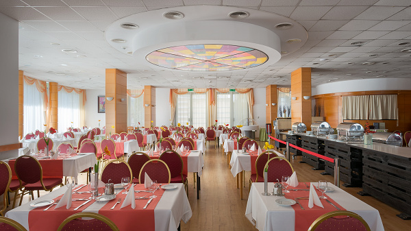 Hotel je propojen s termálními lázněmi a zážitkovým areálem Aqua–Palace.