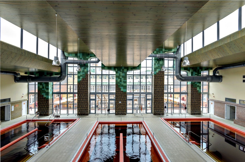 Koupání v bazénech je obohaceno různými prvky: vodní masáže, masáže, prameny, proudy, bublinkové lázně, vířivky atd. Rodinné a obří skluzavky jsou připravené pro ty, kdo milují aktivní dobrodružství ve vodě.
