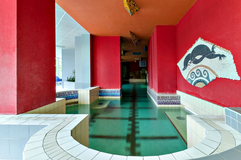Exkluzivní dobrodružné bazény evokují různá období a různá místa (tropický bazén, bazén v ledové jeskyni, bazén s kinem, termální bazén Pávai, bazén v jeskyni, římský bazén, bazén Ganga, mořský bazén).