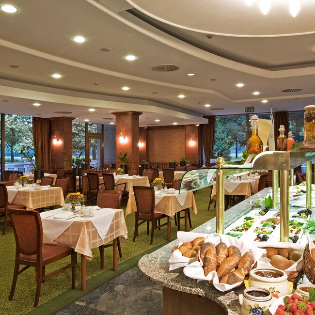 Nově zrekonstruovaná restaurace Platán nabízí bohatou snídani formou bufetu, kterou si můžete vychutnat i na naší venkovní terase od jara do podzimu. Bistro Baróka se širokým výběrem z lehkých svačinek, salátů a čerstvých, zdravých jídel, vynikajícího sladkého pečiva, zmrzliny, kávy a čaje. Drink bar Neptun v lázeňské části, Begonia Café and Terrace, Margaret Brasserie and Victoria Drink Bar. V restauraci Széchenyi v lázeňském hotelu Grand Margaret Island, v prostředí připomínajícím slavnou éru Rakouska-Uherska si mezi vzrostlými stromy na krásné zahradní terase vychutnáte vybrané pokrmy. Na jídelním lístku najdete původní maďarská jídla a mezinárodní speciality, ale i mnoho lehkých, zdravých pokrmů. K večeři hraje každý den (kromě pondělí) živá hudba. Recepce 24 hod., Wi-Fi zdarma, půjčovna aut, hotelové taxi, garáže za poplatek, uzavřené parkoviště.