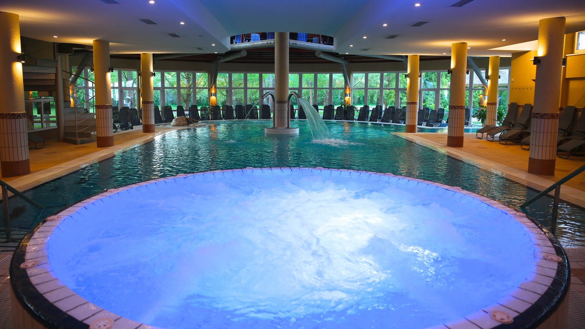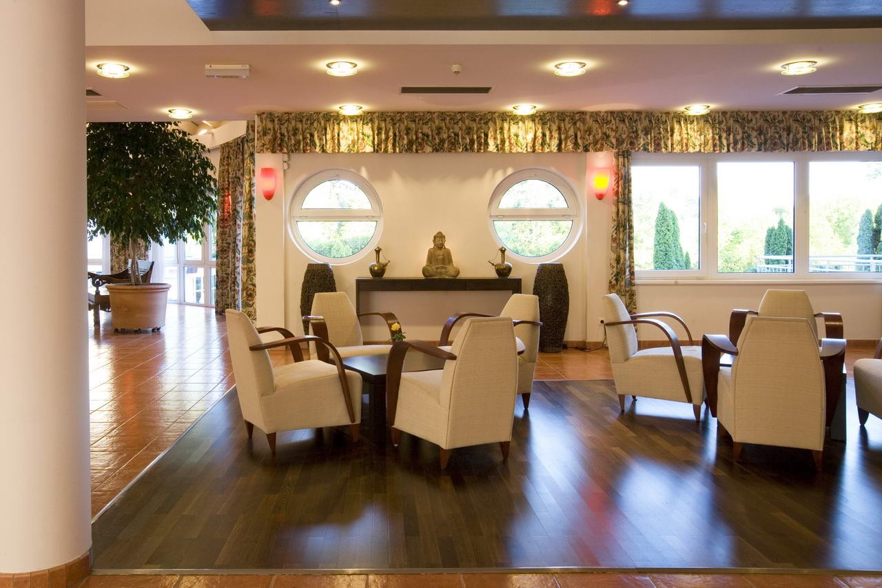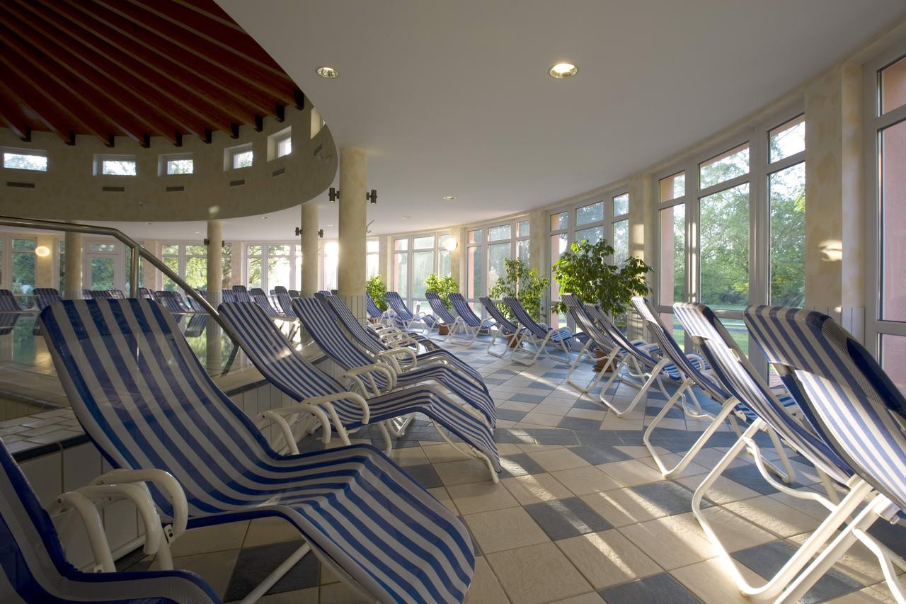 Hotel je napájen termální vodou z jezera a hosté mají k dispozici vnitřní bazén s masážními tryskami (31-33 °C), venkovní bazén (30-32 °C), vnitřní bazén s léčivou vodou (36-39 °C), whirlpool, vnitřní relaxační bazén (33-34 °C). Saunový park nabízí laconium, parní lázeň, aroma saunu, infračervené kabiny, zahradní saunu, finskou saunu. Jeskyně se solí z Mrtvého moře. Hotel nabízí různé sportovní aktivity – 4 venkovní tenisové kurty (od dubna do října), posilovna, volejbal, stolní tenis, lukostřelba, petang, jízda na koni.