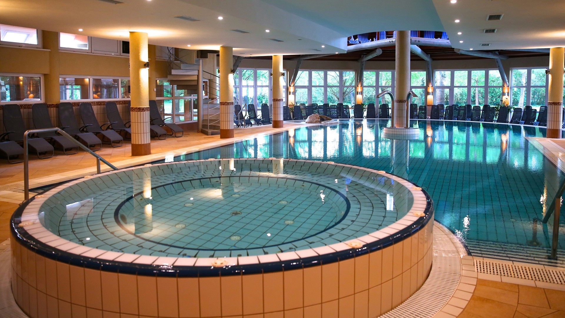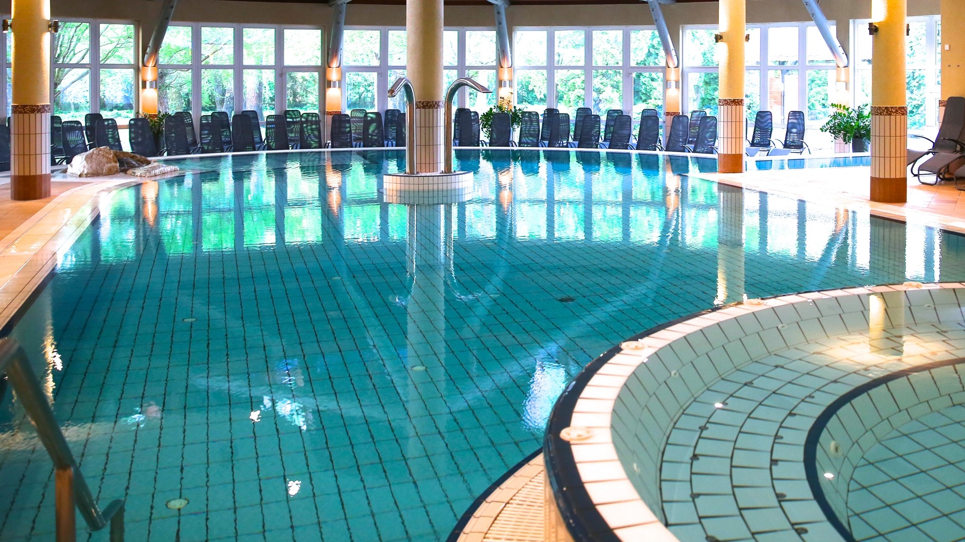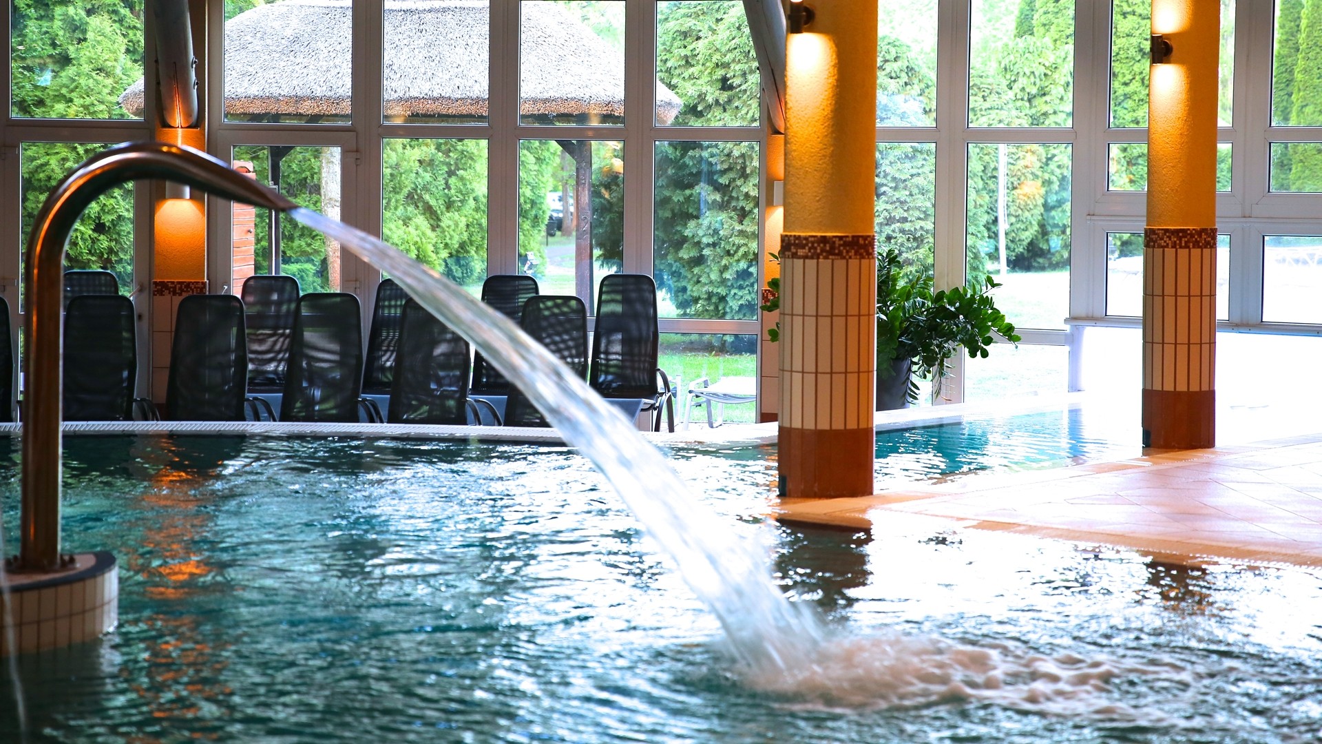 Hotel je napájen termální vodou z jezera a hosté mají k dispozici vnitřní bazén s masážními tryskami (31-33 °C), venkovní bazén (30-32 °C), vnitřní bazén s léčivou vodou (36-39 °C), whirlpool, vnitřní relaxační bazén (33-34 °C). Saunový park nabízí laconium, parní lázeň, aroma saunu, infračervené kabiny, zahradní saunu, finskou saunu. Jeskyně se solí z Mrtvého moře. Hotel nabízí různé sportovní aktivity – 4 venkovní tenisové kurty (od dubna do října), posilovna, volejbal, stolní tenis, lukostřelba, petang, jízda na koni.
