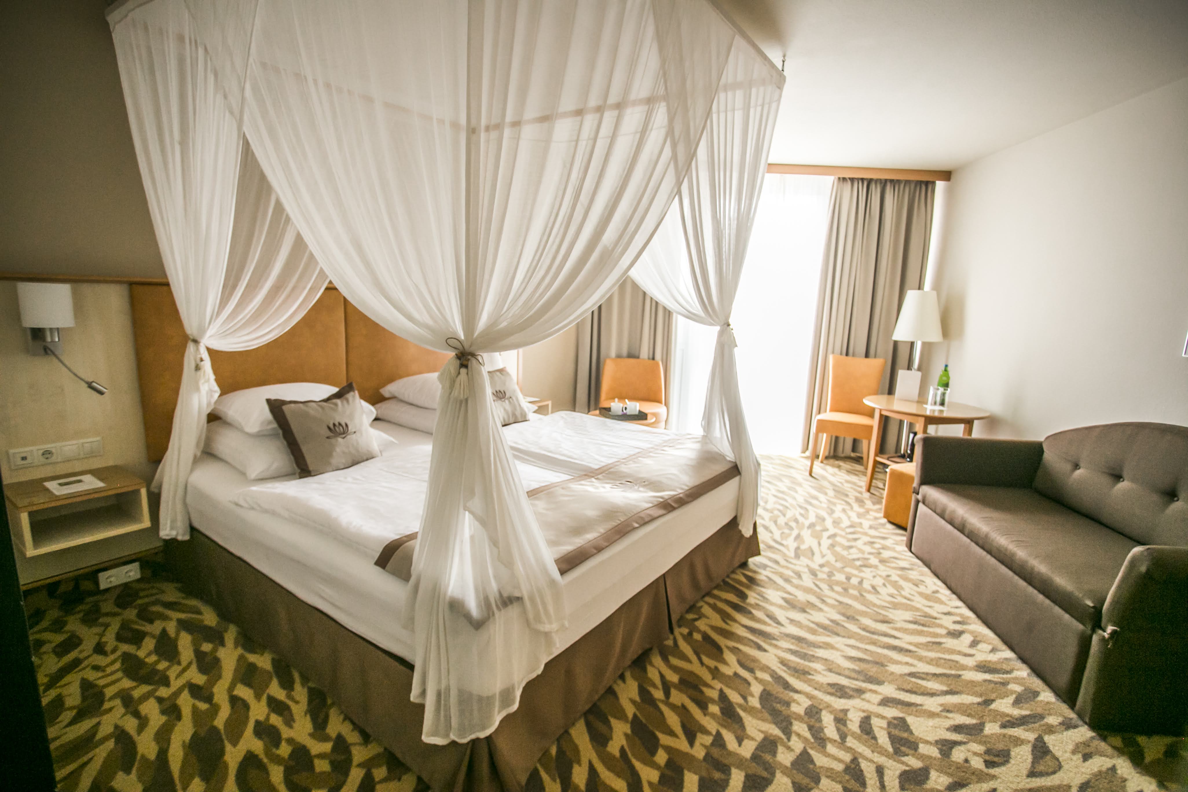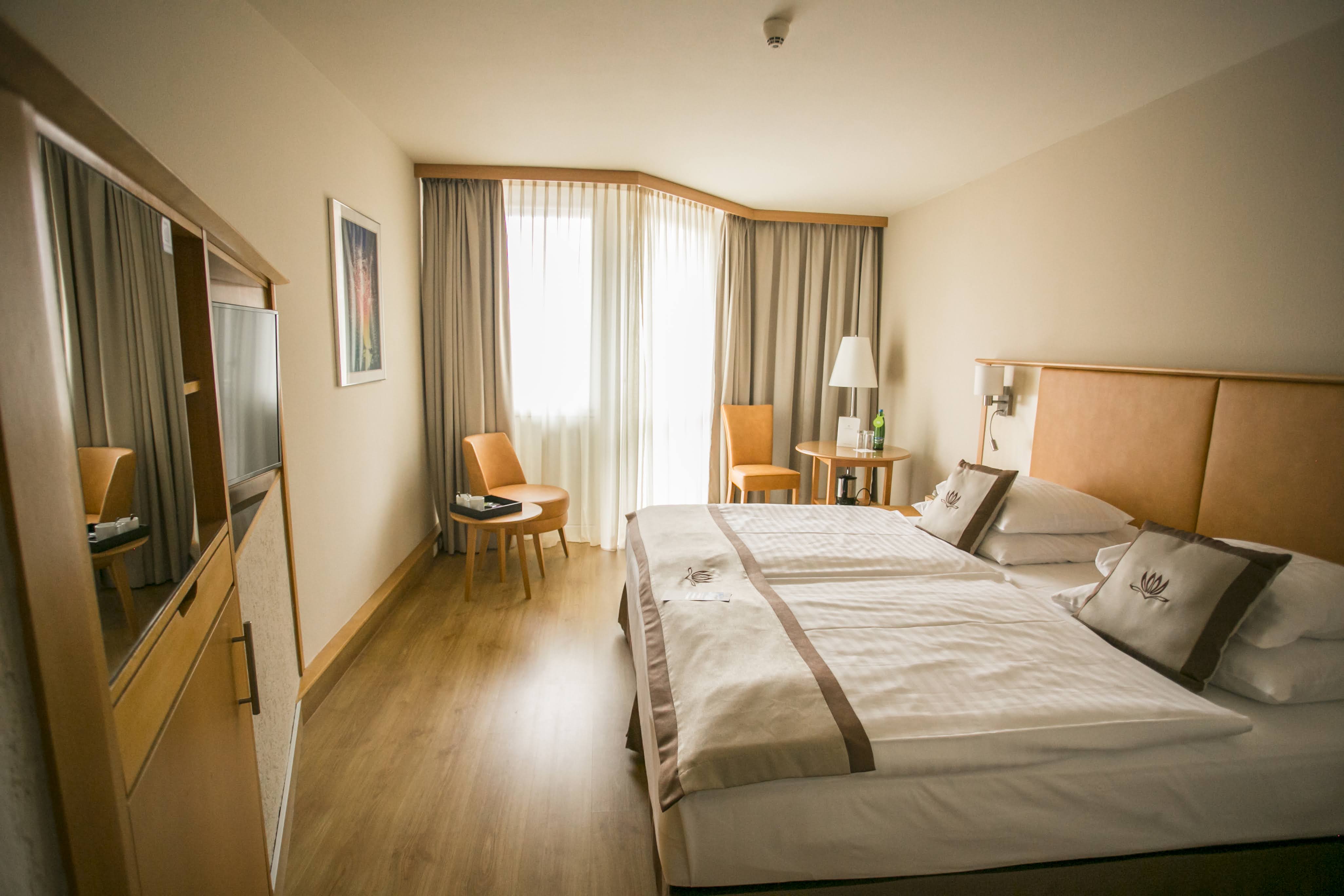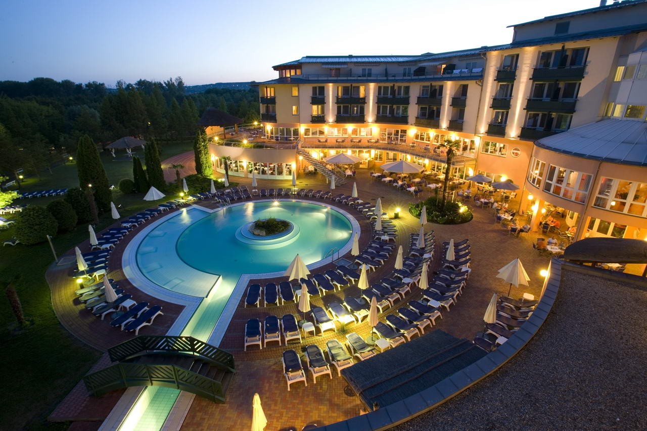 Exkluzivní a wellness hotel má vlastní termální lázně, nachází se v klidném prostředí zeleného parku a je vzdálen cca 600 m od termálního jezera. Wellness centrum poskytuje kompletní služby pro relaxaci těla, mysli a duše. Hotel nabízí 1 a 2 lůžk. klimatizované pokoje s možností přistýlky, které mají vanu nebo sprchu, WC, fén, SAT-TV, mini-bar, trezor, přístup na internet, balkon nebo terasu.