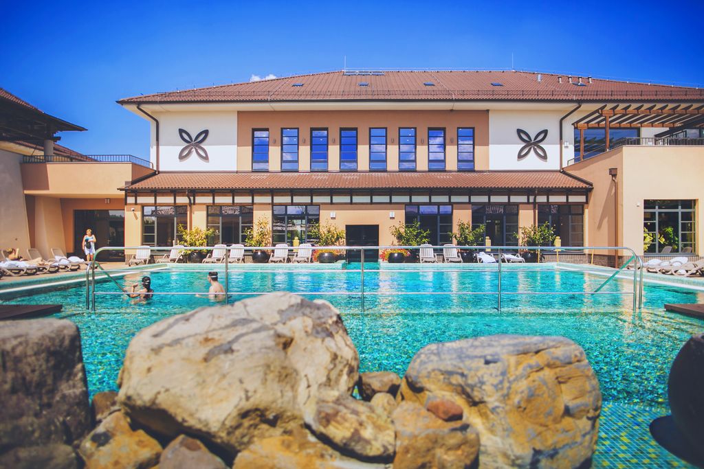 Kryté lázně a koupaliště s léčivou termální a pitnou vodou se rozprostírají na 13 ha a jeho vodní plocha je více než 5 000 m2. Komplex s 27 bazény očekává návštěvníky po celý rok, aby zde léčili a zregenerovali své tělo. V květnu a září může být provoz venkovních bazénů omezen z důvodu nestálého počasí. Čtyři skluzavky v komplexu s bezplatným vstupem, z nichž si mohou podle vlastních nároků i odvahy vybrat všechny věkové skupiny, nabízejí nezapomenutelné zážitky. Tobogán anakonda se dlouze a klikatě vine, kamikadze s náhlým pádem se doporučuje spíše odvážnějším návštěvníkům, po rodinné skluzavce si může sjet i více lidí najednou, zatímco na jedinečné skluzavce ve tvaru cibule dopadnete do vody až po vydatné rotaci. Skluzavky kamikadze a cibule můžete používat po dosažení 12 let, skluzavku anakonda od 7 let a rodinnou skluzavku již od 2 let. Skluzavka cibule je určena pro osoby do hmotnosti 100 kg. Lázně Vám nyní nabízejí ideální místo k odpočinku. Speciální služby nejsou určeny pouze letním hostům. Ti z Vás, kdo hledají odpočinek, budou okouzleni zcela novou relaxační budovou v lázeňském parku, kde si můžete vychutat perfektní relaxaci v přímém sousedství s přírodou. Nová relaxační budova nabízí příležitost k odpočinku až 500 zákazníkům, kteří mají k dispozici zdarma lehátka, hračky, pohovky a místnost pro maminky s dětmi. Oddělené pohovky, galerie v prvním poschodí a odpočívárny s venkovními slunečnými terasami přispívají k pocitu soukromí, klidnému zotavení a pohodlnému odpočinku. Odpočinková budova dobře zapadá do okolí, "ztracená" zeleň byla nahrazena vnitřními zahradami a zelenou střechou tak, aby hosté dychtící po odpočinku cítili trvalou vazbu na venkovní prostory a prostředí.
