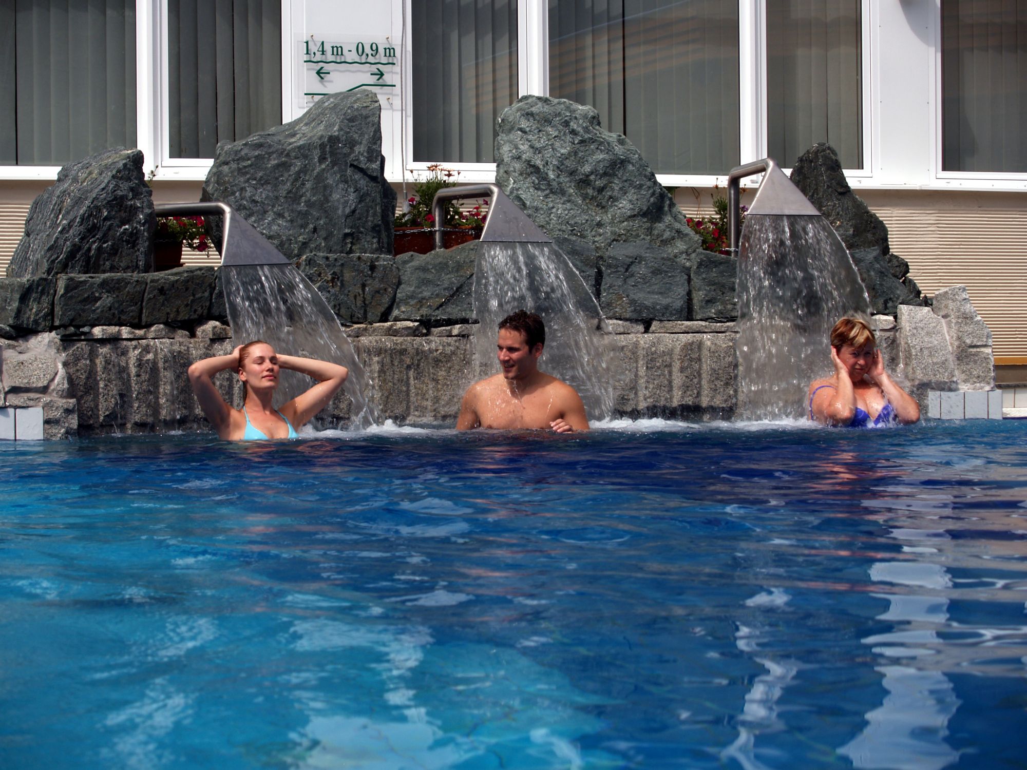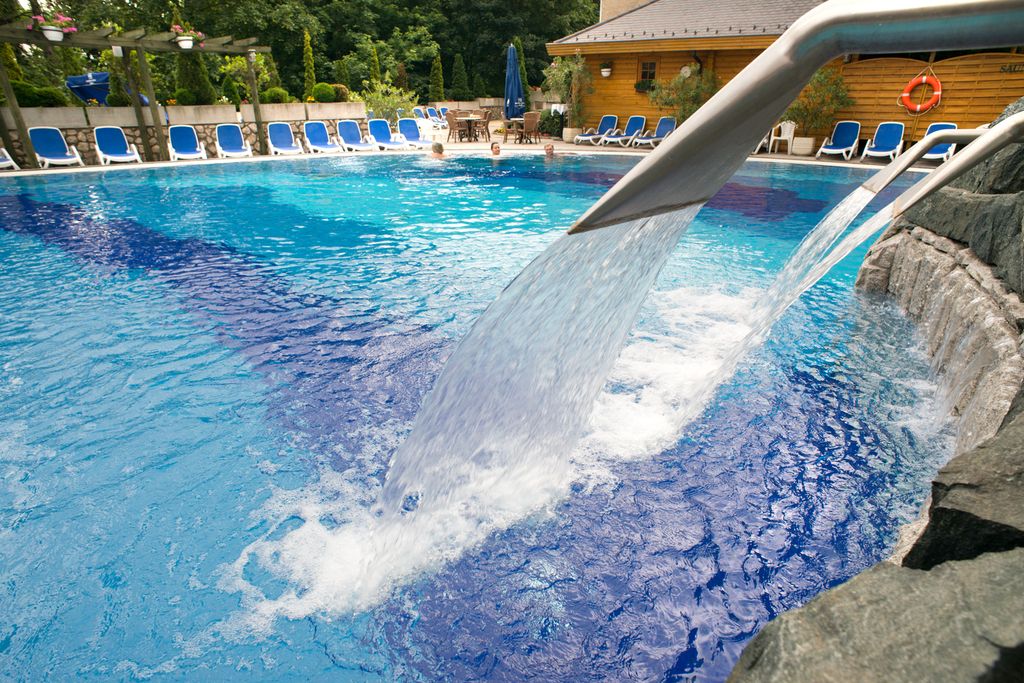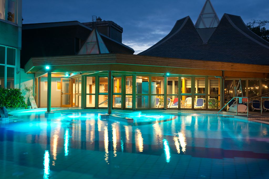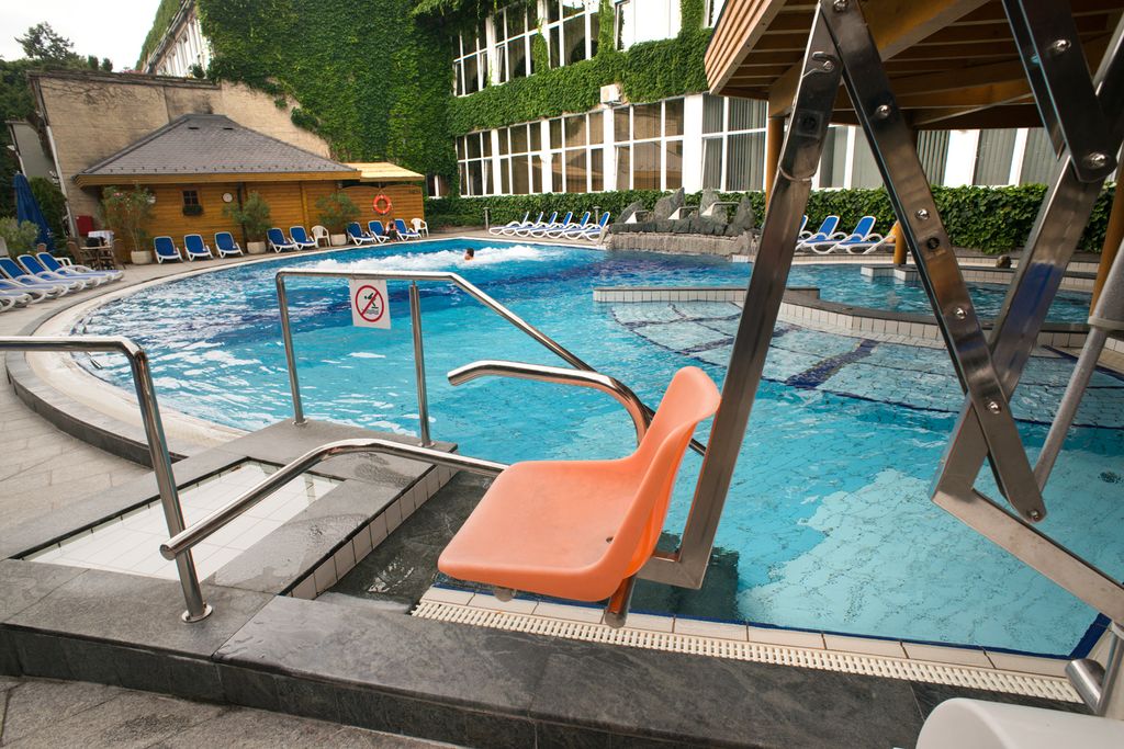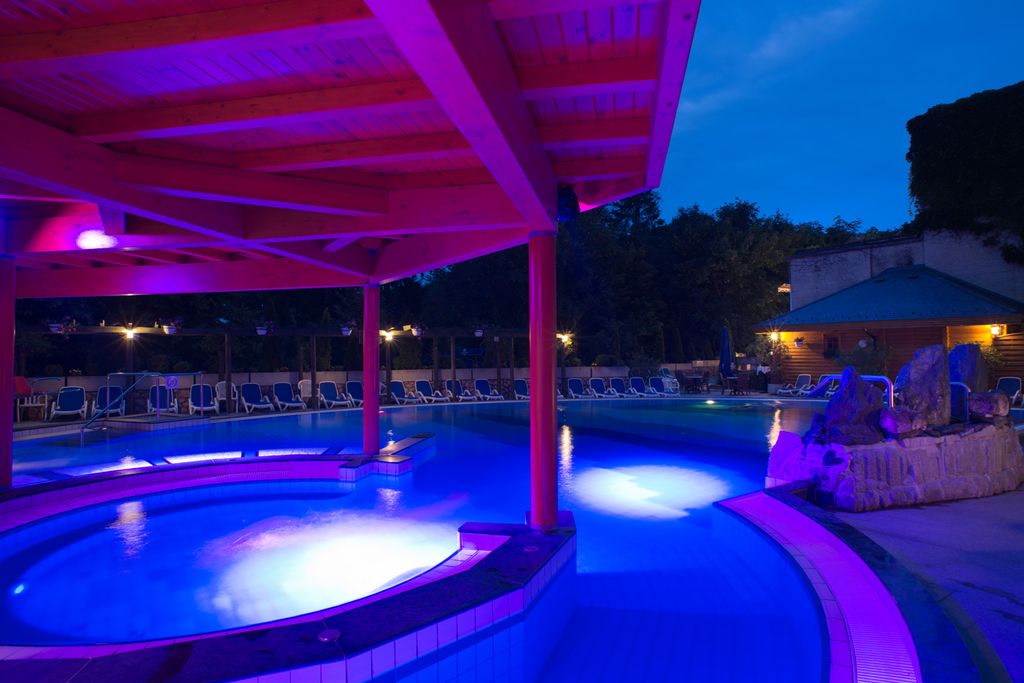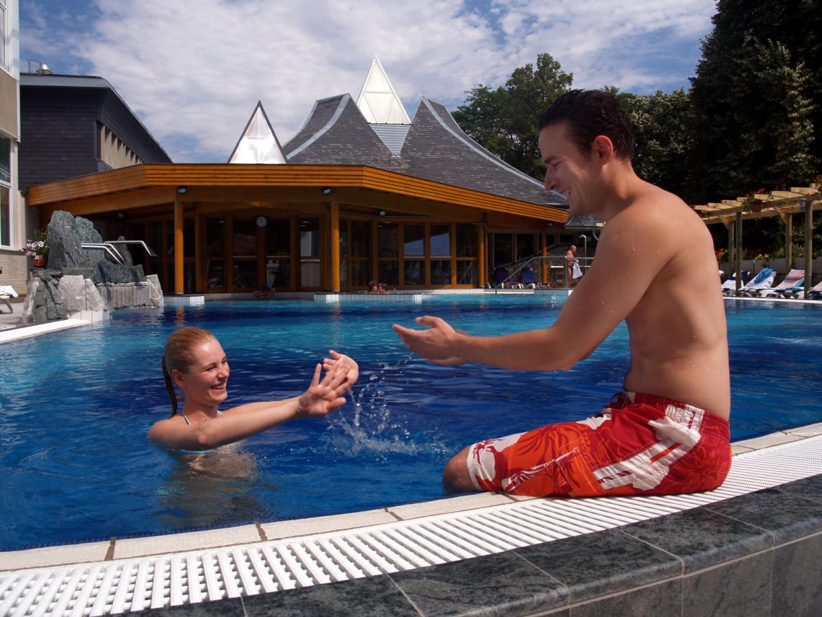 Hostům je k dispozici vodní svět: vnitřní plavecký bazén (10 x 16 m, 28 °C), 2 vnitřní termální bazény (33 °C, 37 °C), whirlpool, venkovní termální bazén 33 °C se sluneční terasou (otevřen od poloviny dubna do poloviny října), venkovní zážitkový bazén o rozloze 200 m² s podvodními masážními tryskami, vodopády a gejzíry, světelnými efekty a hudbou (otevřen po celý rok), jacuzzi, obnovený svět sauny (bio sauna, finská sauna, infra kabina, parní kabina, zážitková sprcha, odpočinková zóna), parní komora, finská sauna v zahradě. Možnost wellness a léčebných procedur za poplatek. Hosté mohou využít fitness, sportovní programy (jóga, aqua aerobic, ranní cvičení, nordic walking).