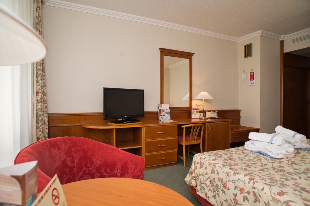 Pokoje STANDARD (25 m²) 1. - 3. patro s možností přistýlky pro dítě, s výhledem na lesopark nebo na město. Vybavení pokojů: klimatizace, koupelna s vanou, WC, fén, župan, TV, telefon, Wi-Fi zdarma, trezor, mini-bar (za poplatek), balkon, možnost propojení pokojů. Při rezervaci je možno uvést požadavek na výhled, který je bez garance.