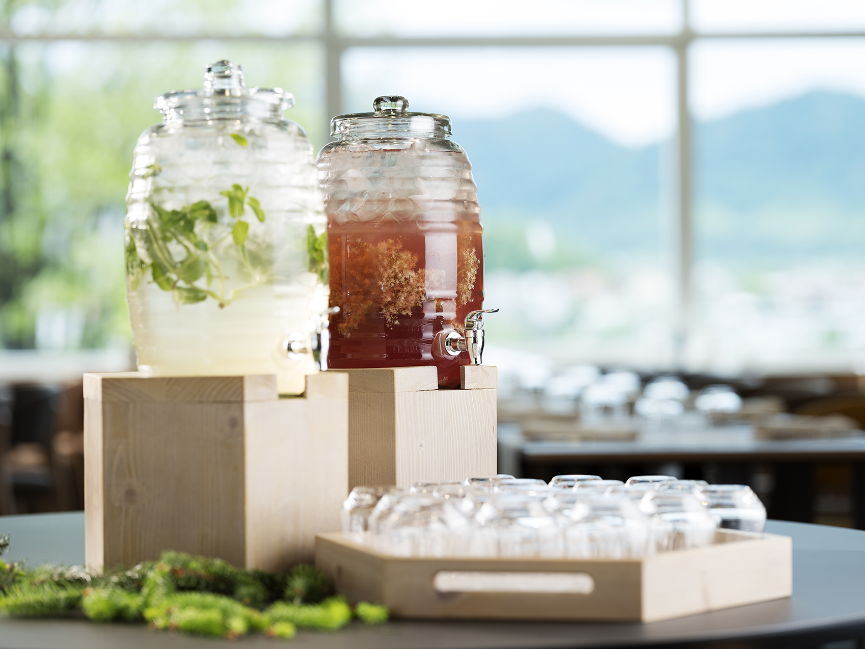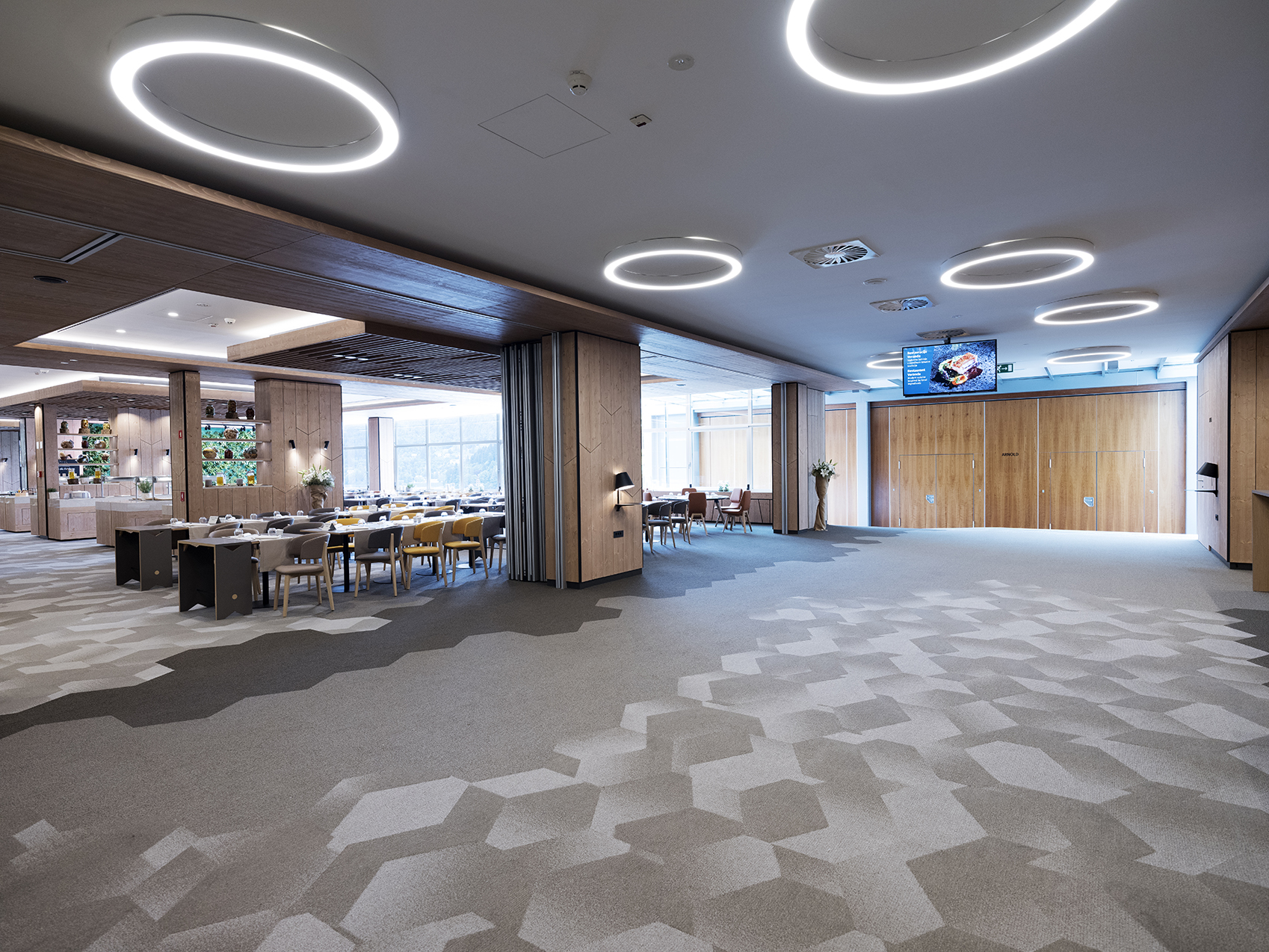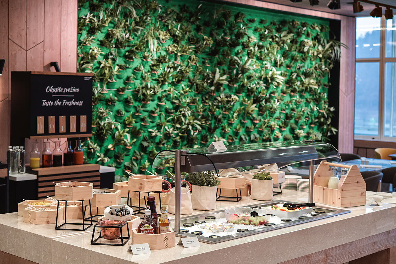 Restaurace Golf k podávání jídel formou bufetu, aperitiv bar nabízí různé druhy kávy, nápoje, koktejly. Restaurace Živa ve wellness centru. Recepce, trezor, Wi-Fi zdarma, živá hudba, parkování.