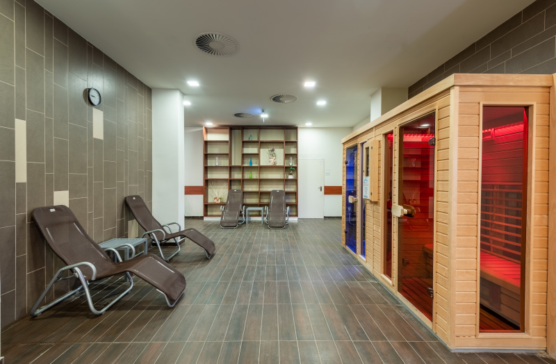 Hosté využívají hotelové wellness centrum (zážitkový bazén, finská sauna, infra sauna, aroma parní kabina, solná komora, fitness místnost). Hotel je propojený s termálním areálem, kde je 9 venkovních a 11 krytých bazénů (termální bazény, skluzavky, dětské bazény, bazény s perličkovou lázní, s podvodními tryskami, plavecký bazén, bazén s mořskými vlnami). Venkovní bazény jsou v provozu pouze v letním období dle aktuálního počasí. Sauna, kosmetický salón, dámský kadeřník, použití tenisového kurtu, pedikúra, manikúra, masáže za poplatek.