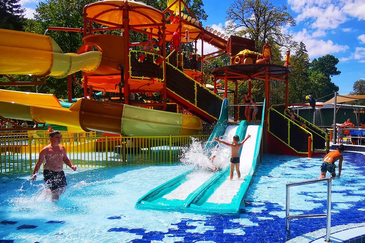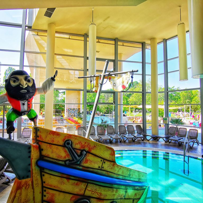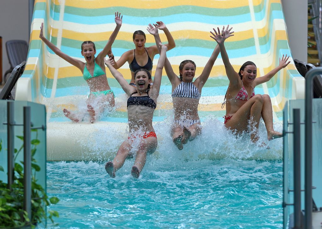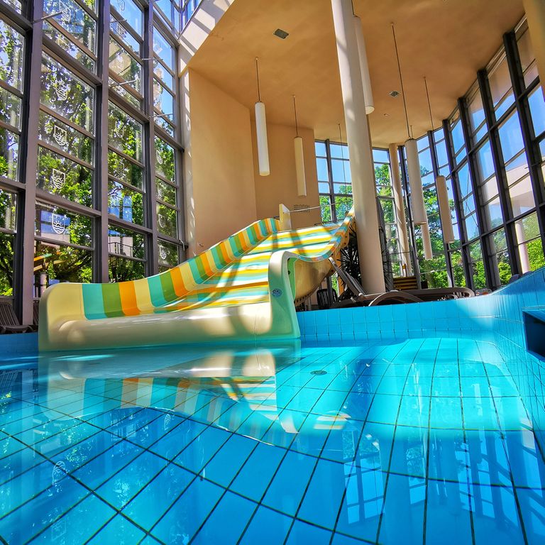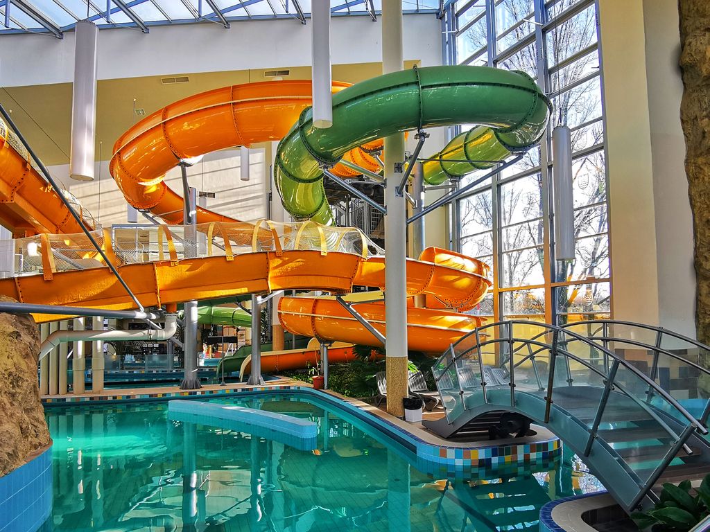 6x termální bazén venkovní, 9x termální bazén krytý, 1x plavecký bazén venkovní, 4x dětský bazén, 1x tobogán