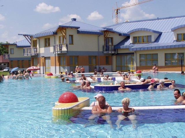 Město se pyšní dvěma vydatnými prameny termální vody. Ten, který zásobuje termální vodou lázně, vyvěrá o teplotě 43 °C z hloubky přibližně 1 300 m, další o teplotě 83 °C s vysokým obsahem minerální soli, je využíván na výrobu termální koupelové soli. Lázeňský areál poskytuje návštěvníkům kromě 3 600 m² vodní plochy i služby wellness a fitness centra a světa sauny.