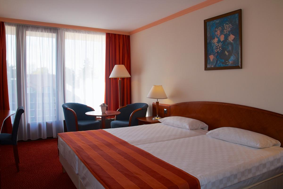 Hotel nabízí 1 a 2 pokoje SUPERIOR (20m²) s možností přistýlky, které jsou kompletně renovované. Vybavení pokojů: klimatizace, koupelna, WC, fén, župan, TV, telefon, Wi-Fi zdarma, rádio, trezor, mini-bar, balkon nebo francouzský balkon, možnost propojení pokojů. Výhled na parkoviště nebo na termální bazén nebo na ulici Rákoczi – konkrétní výhled nelze zajistit, pouze Váš požadavek při objednávce pobytu nahlásíme.