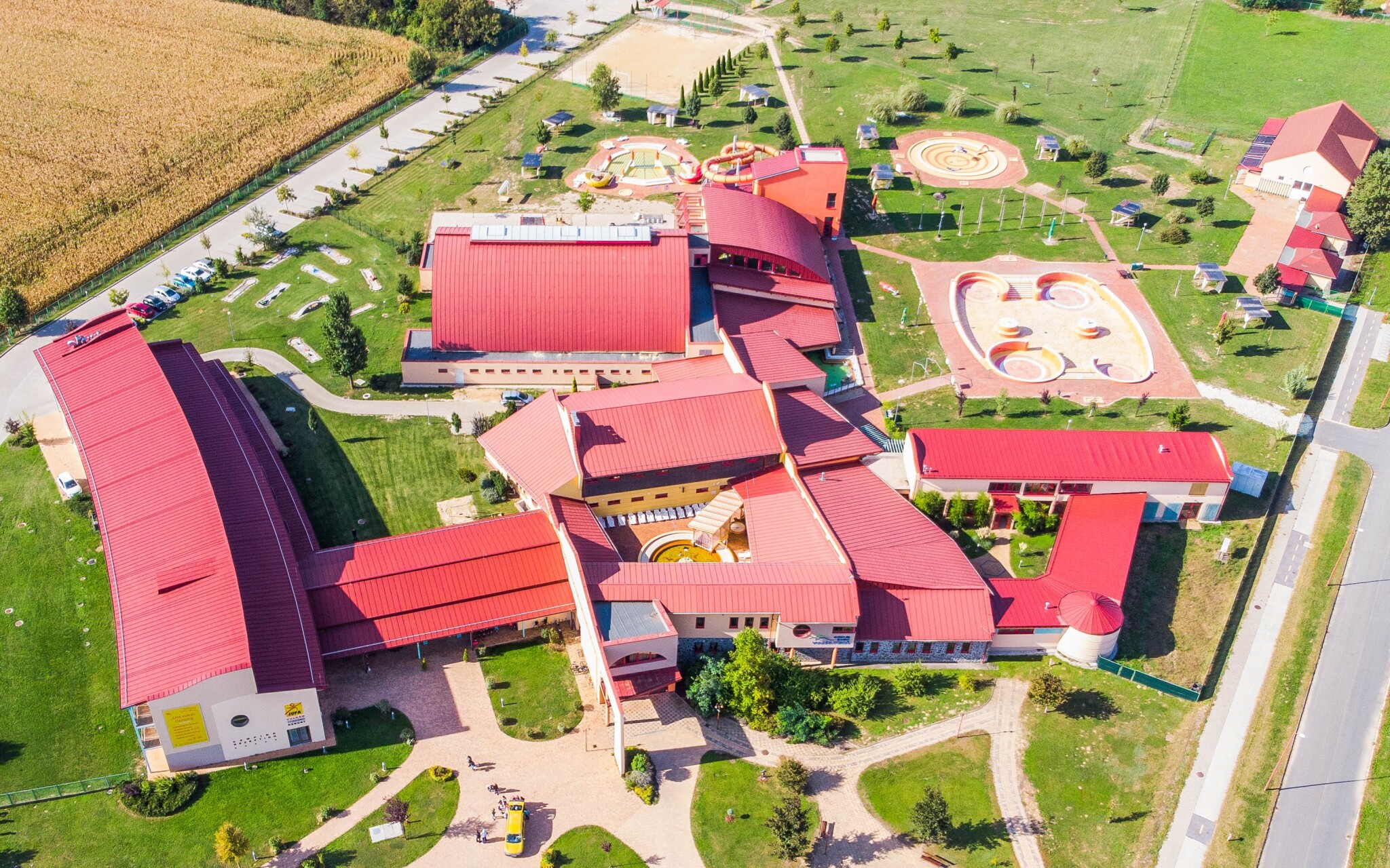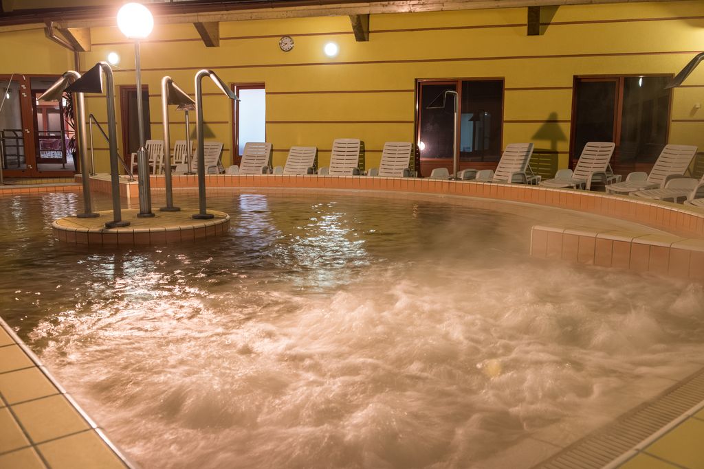 Hoteloví hosté využívají termální lázně o vodní ploše 1600 m² (krytý 25 m dlouhý plavecký bazén 24-26 °C, krytý výukový bazén 29-30 °C, ochlazovací bazén u sauny 10-12 °C, termální léčivý bazén 33-35 °C, kombinovaný krytý a otevřený sedací bazén s léčivou vodou 32-34 °C, venkovní dětský bazén se skluzavkou 30-32 °C – letní provoz, dětský bazén na hraní 28-30 ºC – letní provoz, zážitkový bazén s rozlohou 560 m² – letní provoz).
