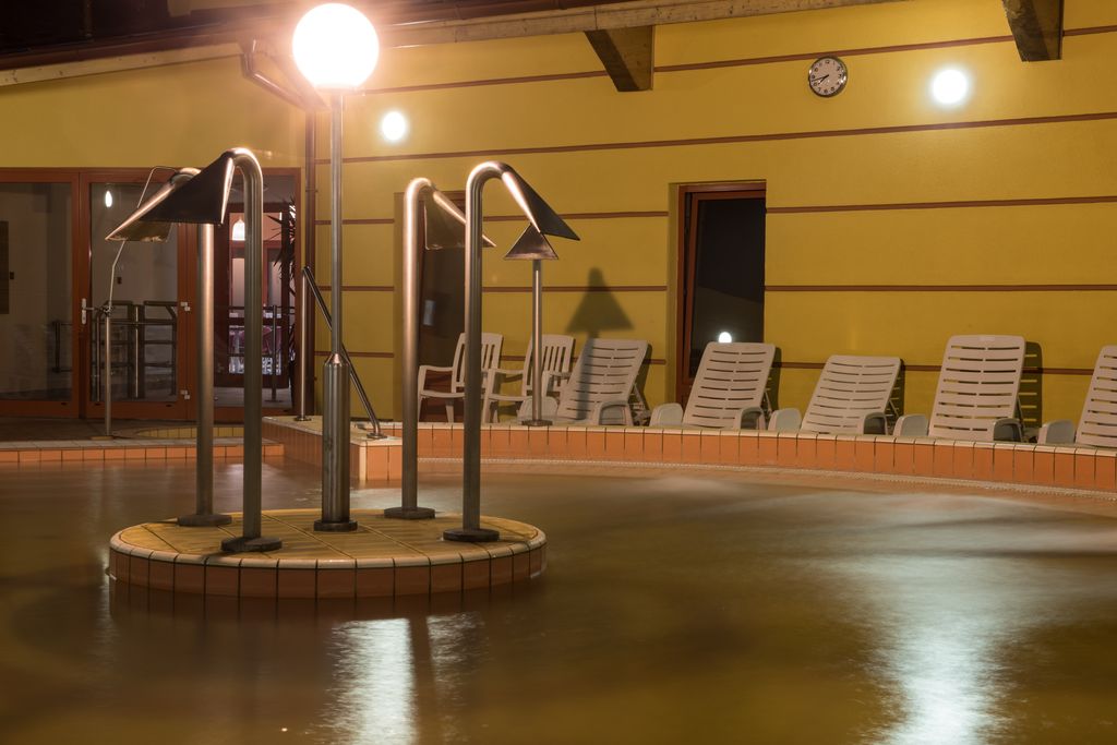 kombinovaný krytý a venkovní sedací bazén s termální vodou 36-37 °C