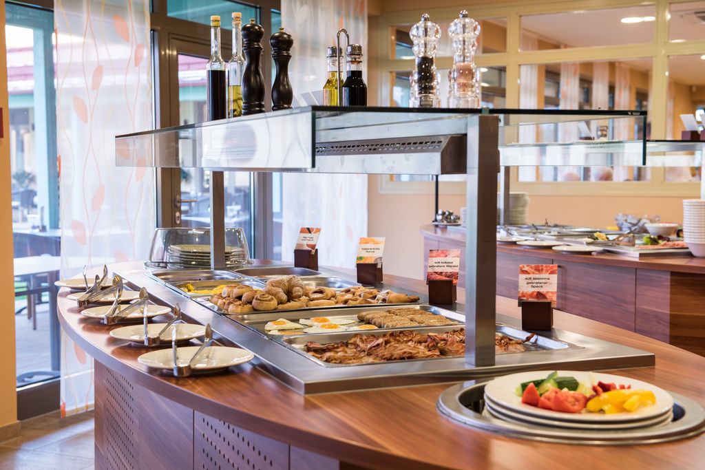 Hotelová restaurace nabízí snídaně a večeře formou bohatého bufetu. Nabízí maďarskou i mezinárodní kuchyni, k dispozici čerstvé saláty, čerstvé ovoce a různé zákusky.