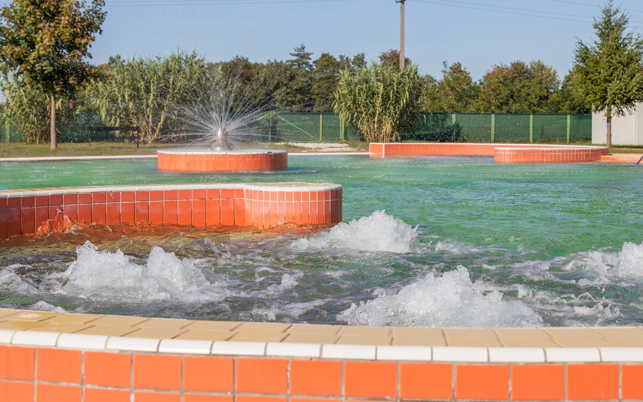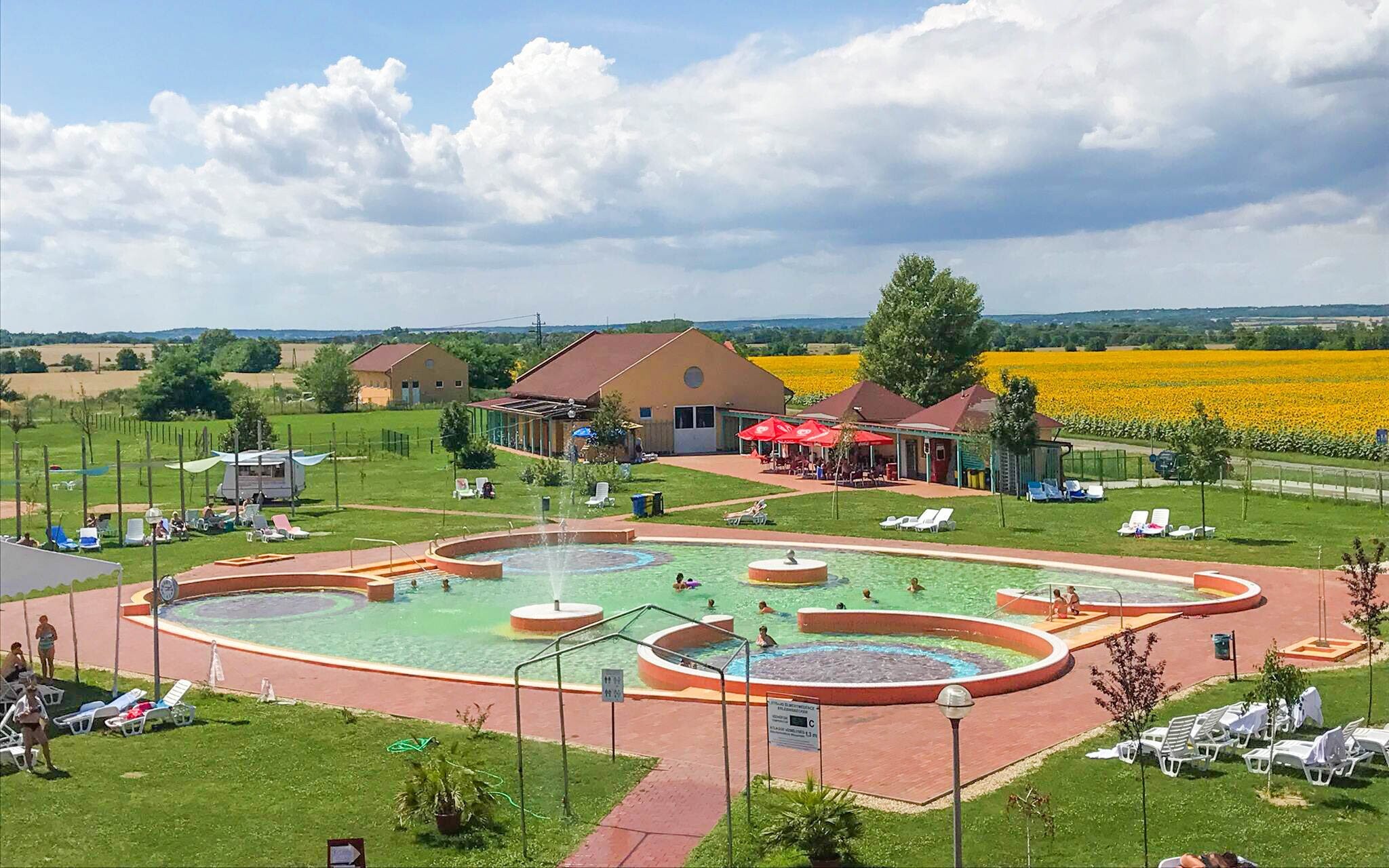 Termální lázně mají vodní plochu 1600 m2 a nachází se zde 8 bazénů: