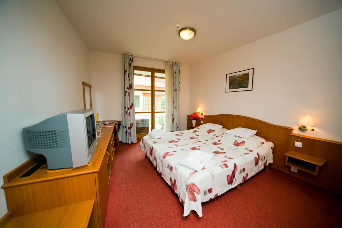 Součástí nově vybudovaného termálního areálu je hotel. V jeho příjemné restauraci se nabízejí domácí maďarská jídla, ale i vegetariánské a mezinárodní gastronomické speciality.