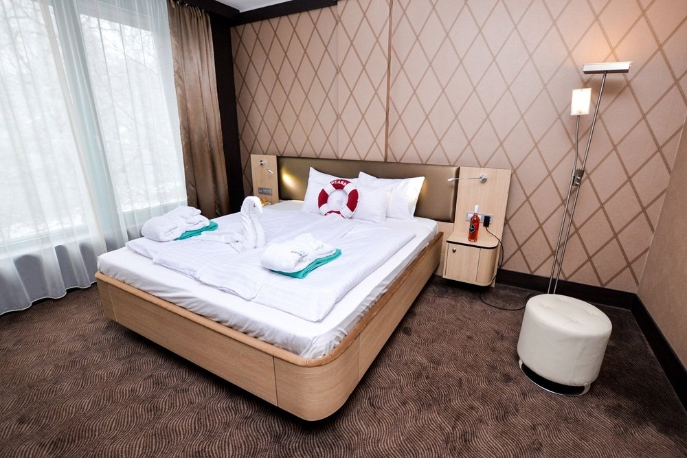 Hotel nabízí komfortně zařízené pokoje SUPERIOR (18-22 m²) - v pokoji může být umístěna max. 1 přistýlka a 1 dětská postýlka, rodinné pokoje (35 m²) - ložnice a obývací pokoj s možností přistýlky pro 1 dítě do 14 let nebo 2 děti do 10 let, apartmány (46-60 m²) - ložnice a obývací pokoj s možností přistýlky pro 2 děti do 14 let nebo 1 dosp. osobu. Vybavení pokojů: klimatizace, koupelna (vana/sprcha), fén, župan, LCD-TV, Wi-Fi, telefon, trezor, mini-bar.