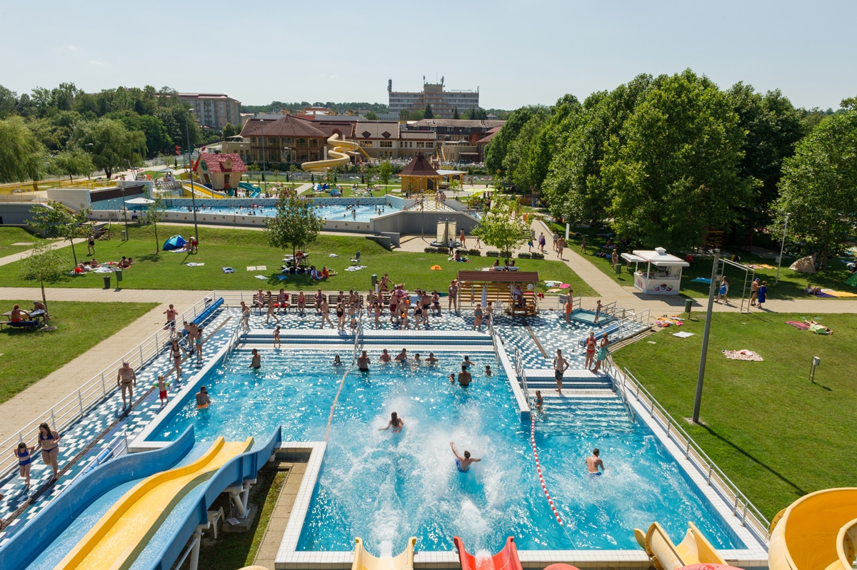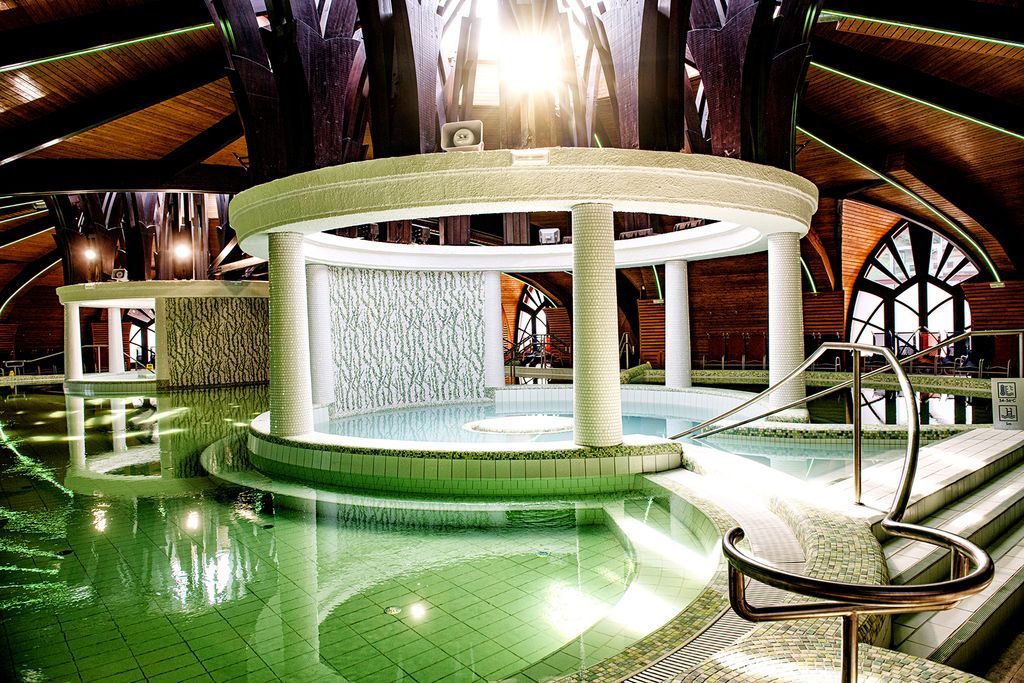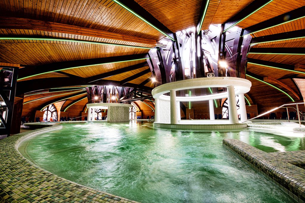 Hoteloví hosté budou využívat lázně s vodní plochou cca 4000 m² uprostřed upraveného a zalesněného parku s bazény o teplotě 28-36 °C (termální bazény, vnitřní a venkovní zážitkové bazény, vnitřní a venkovní dětský svět, tobogány, bazén s vlnobitím). Možnost masáží za poplatek.