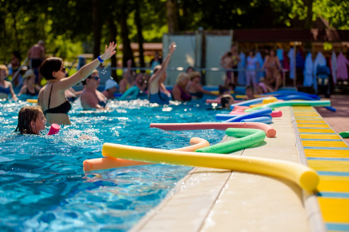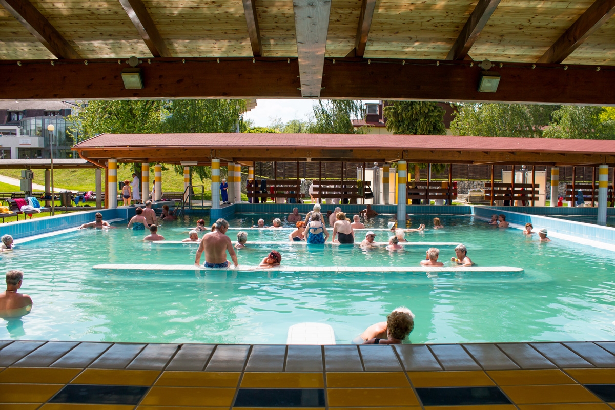 10 Venkovní fitness bazén s termální vodou nabízí 2x denně aqua gymnastiku (vodní plocha 310 m², teplota 32 °C, hloubka 1,2 m).