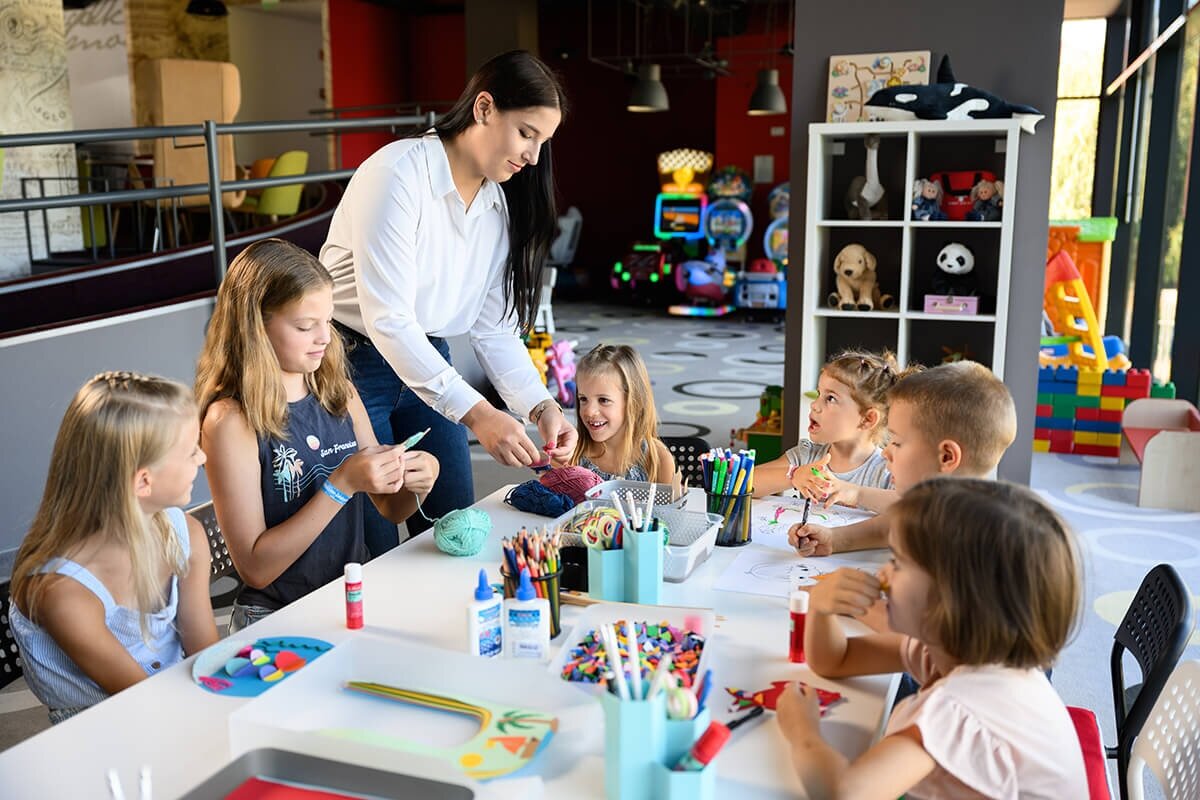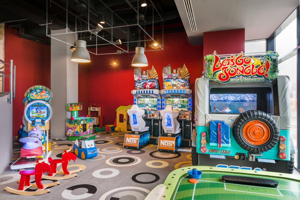 Vícepodlažní zážitkový bazén nabízí dětem vodní děla, tobogány. Tři skluzavky se liší úrovní obtížnosti. Vestavěné ostrovy a zavěšené mosty umožňují přístup z jednoho do druhého bazénu. Další služby: vodní hřiště pro děti a batolata, dětská sauna, pískoviště s hračkami, relaxační zóna, restaurace. Velký žlutý tobogán z části uvnitř a z části venku je v provozu 1.2. - 30.4.: PO-ČT zavřen, PÁ, SO 9,30 - 19,30, NE 9,30 - 18,00.