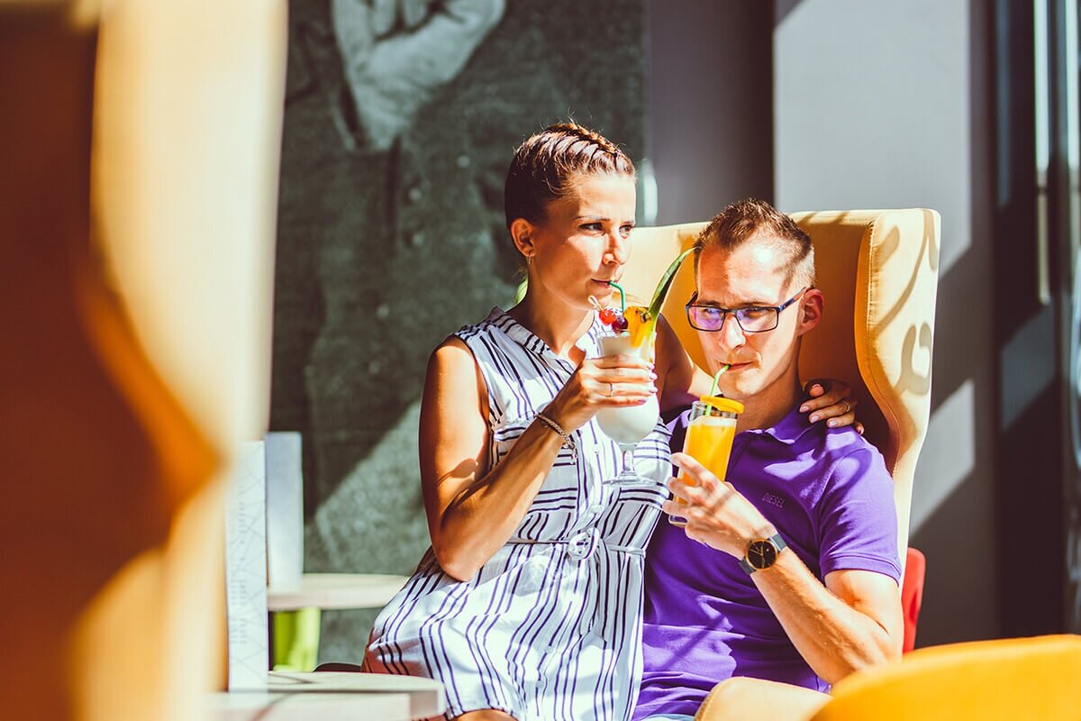 7,00 – 21,30: neomezená konzumace nápojů: nápoje z automatu (káva, voda, nealko nápoje a džusy), široká nabídka čajů, točené pivo a rozlévaná vína
