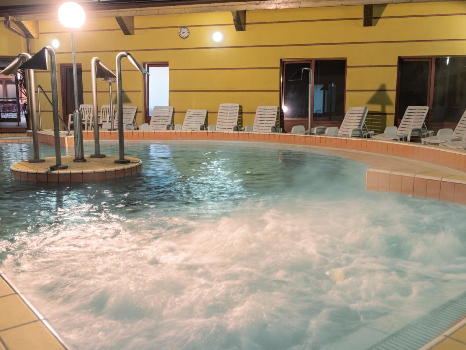 kombinovaný krytý a venkovní sedací bazén s termální vodou 36-37 °C