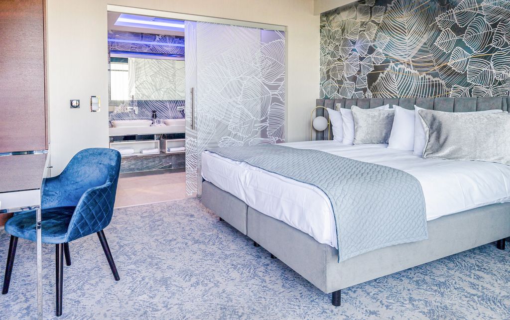Deluxe suite (46-48 m²) – dvě suite jsou umístěny ve 3. patře a dvě ve 4. patře. Apartmány jsou s výhledem na termální areál. Ložnice, obývací pokoj s možností přistýlky pro dvě děti nebo jednu dospělou osobu (rozkládací pohovka), do pokoje je možnost umístit ještě přistýlku nebo postýlku. Vybavení suite: klimatizace, koupelna se sprchou, toaletní potřeby, fén, samostatné WC, SAT-TV, Wi-Fi, telefon, trezor, mini-bar, zařízení na přípravu čaje, terasa (12-69 m²). Župany (i dětské) a plážové osušky jsou k dispozici na recepci wellness centra zdarma.
