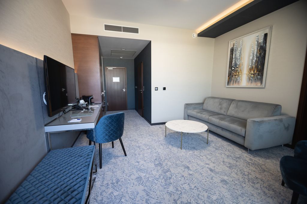 Hotel je propojený s veřejnými lázněmi a nachází se v bezprostřední blízkosti sportovního parku. Nabízí 2 lůžkové pokoje STANDARD (22-26 m²) s možností přistýlky nebo postýlky. Vybavení pokojů: klimatizace, koupelna se sprchou, toaletní potřeby, fén, WC, SAT-TV, Wi-Fi, telefon, trezor, mini-bar, zařízení na přípravu čaje, většina pokojů s balkonem. Župany (i dětské) a plážové osušky jsou k dispozici na recepci wellness centra zdarma.