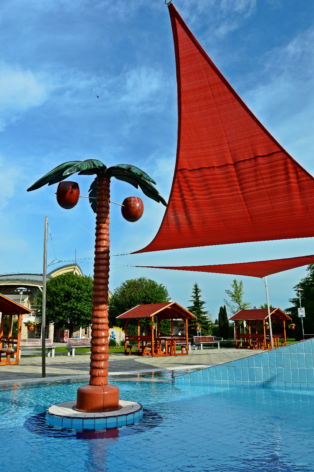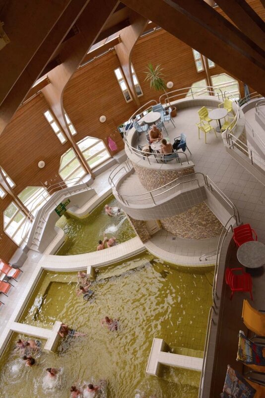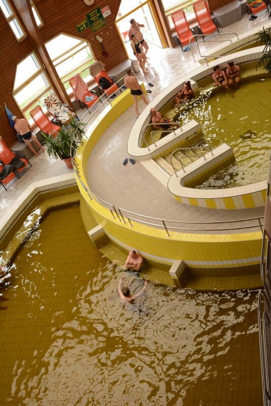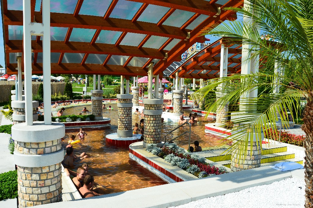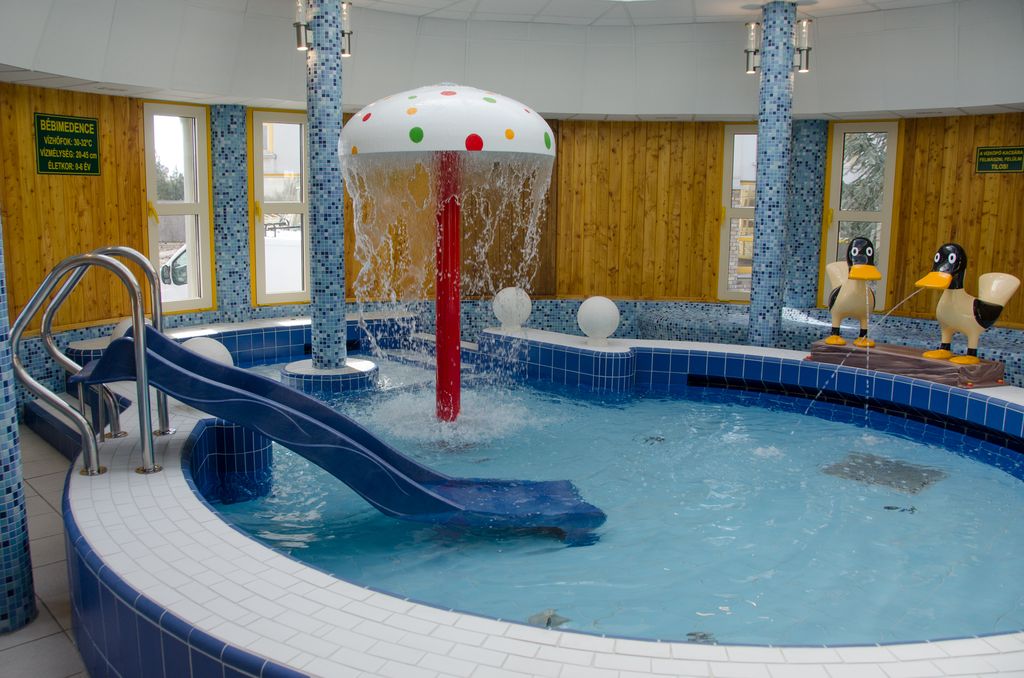 Hoteloví hosté navštěvují termální lázně spojovací chodbou. Kryté lázně a koupaliště s léčivou termální a pitnou vodou se rozprostírají na ploše 7 ha. Vnitřní termální bazén (34-36 °C), vnitřní termální bazén s vířivkou a odpočívadly (36-38 °C), vnitřní kruhový termální bazén (38-40 °C), venkovní termální bazén (32-34 °C).