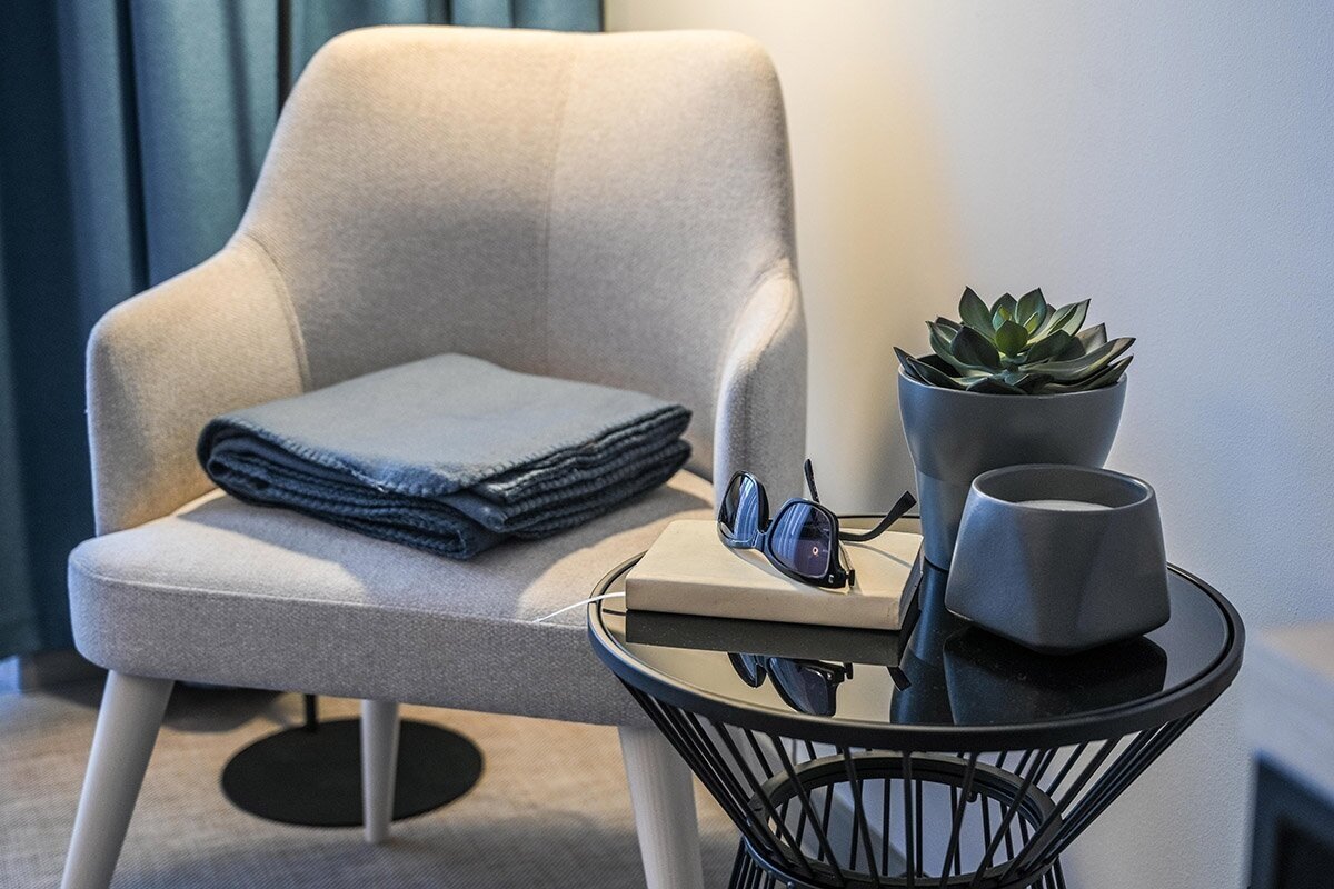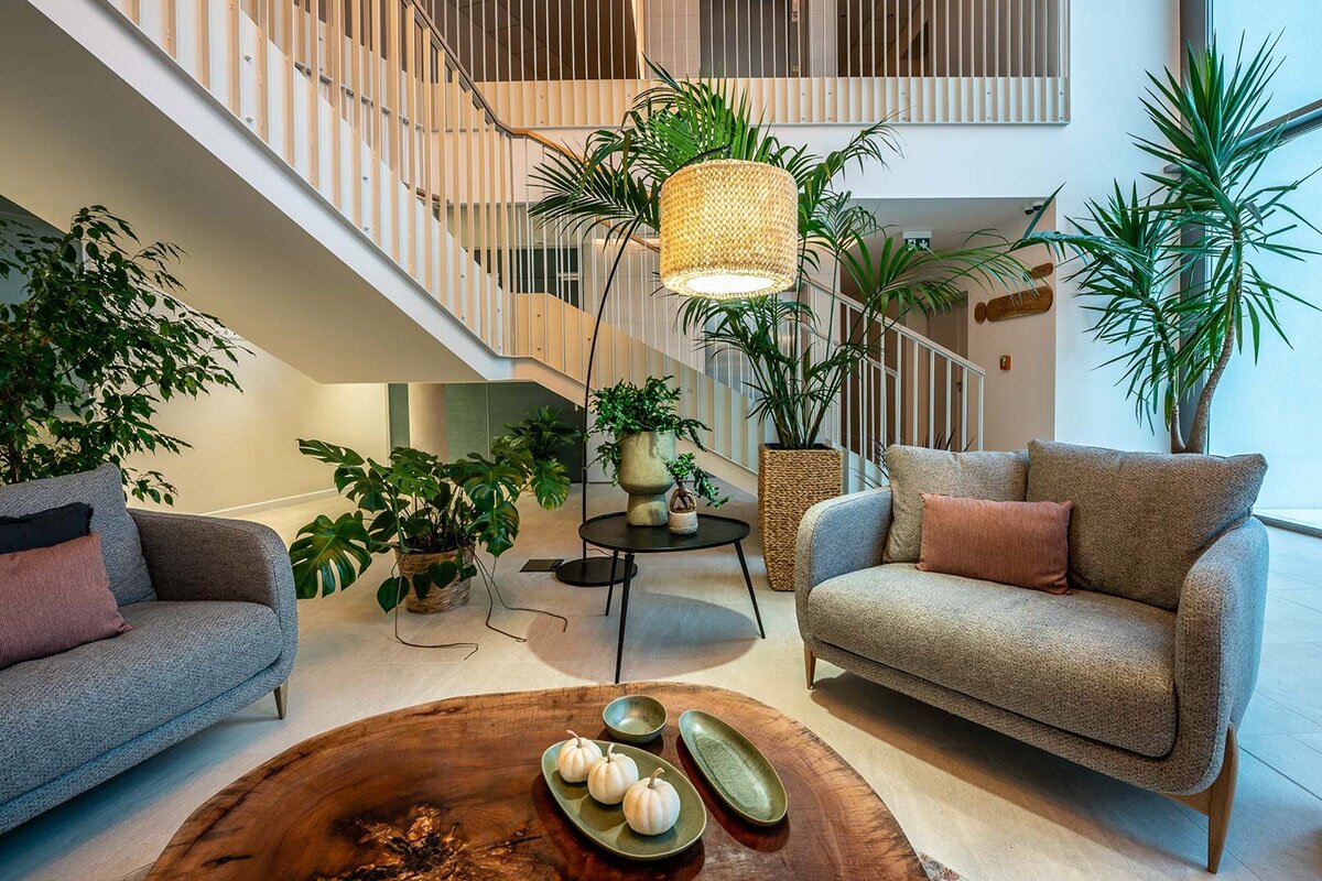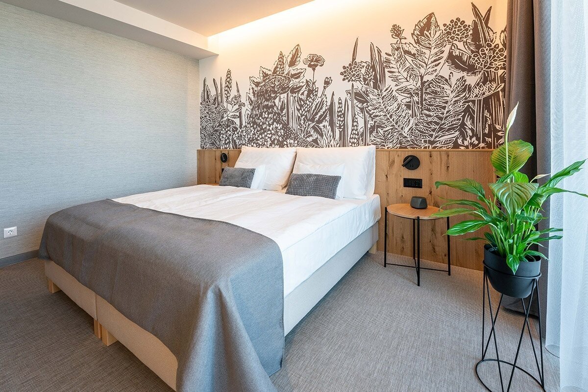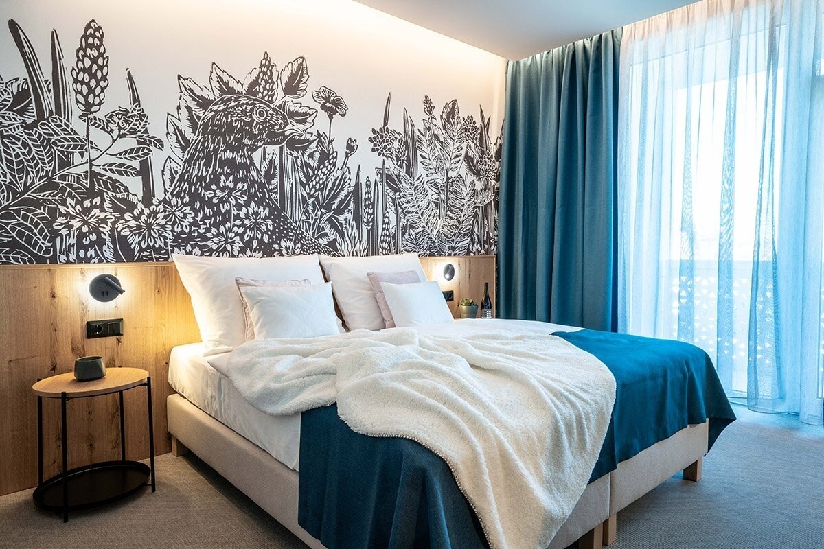 Nabízí 28 pokojů, které jsou zařízené v přírodních barvách. 2 lůžkové pokoje PURE (22 m²) - klimatizace, koupelna se sprchou / vanou, fén, župan a osuška do wellness, LCD-TV, Wi-Fi, telefon, trezor, mini-bar, zařízení na přípravu čaje, většina pokojů s balkonem. Možnost propojených pokojů. Dále nabízí bezbariérové pokoje.
