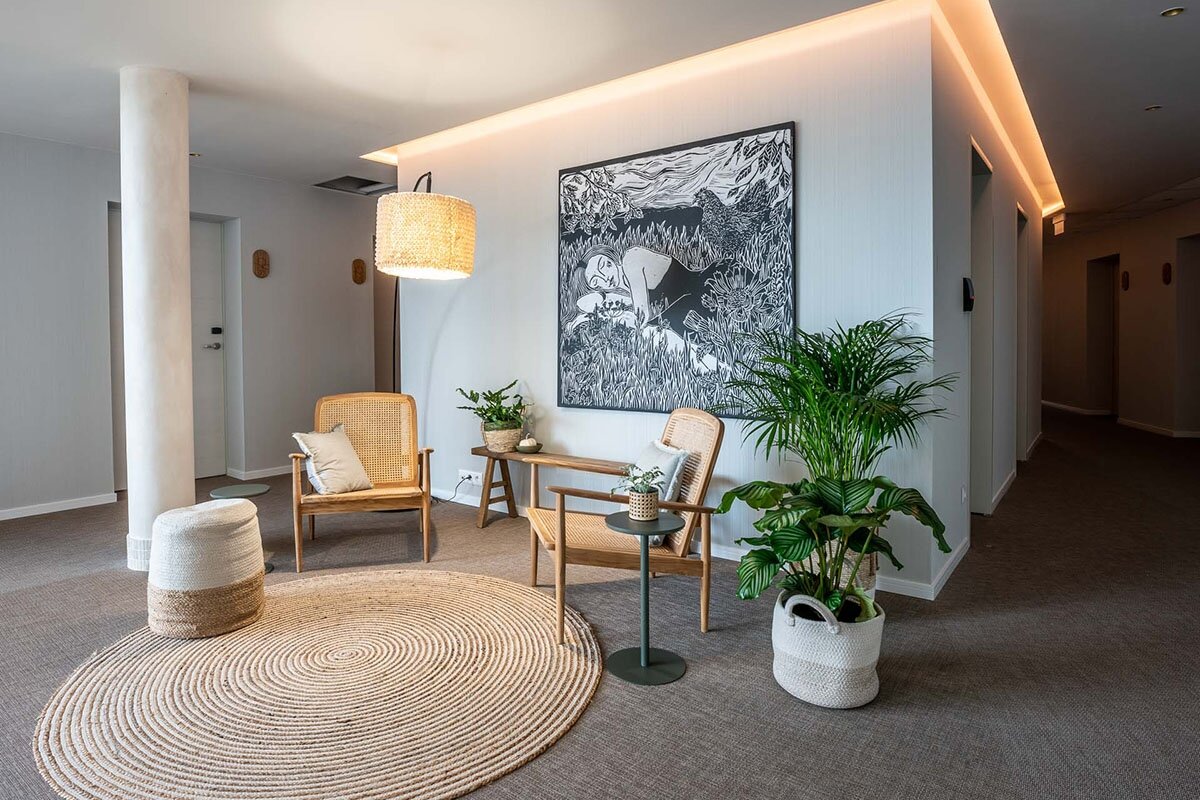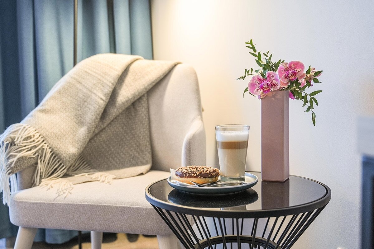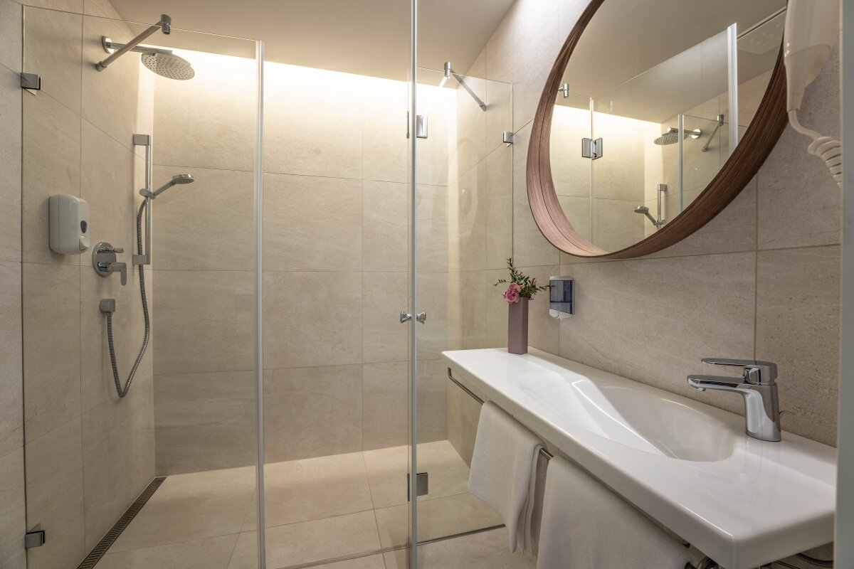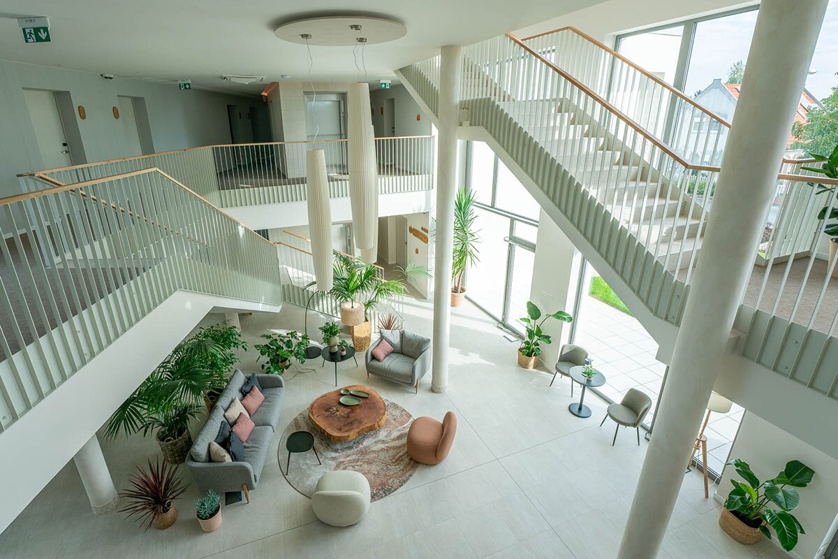 Nabízí 28 pokojů, které jsou zařízené v přírodních barvách. 2 lůžkové pokoje PURE (22 m²) - klimatizace, koupelna se sprchou / vanou, fén, župan a osuška do wellness, LCD-TV, Wi-Fi, telefon, trezor, mini-bar, zařízení na přípravu čaje, většina pokojů s balkonem. Možnost propojených pokojů. Dále nabízí bezbariérové pokoje.