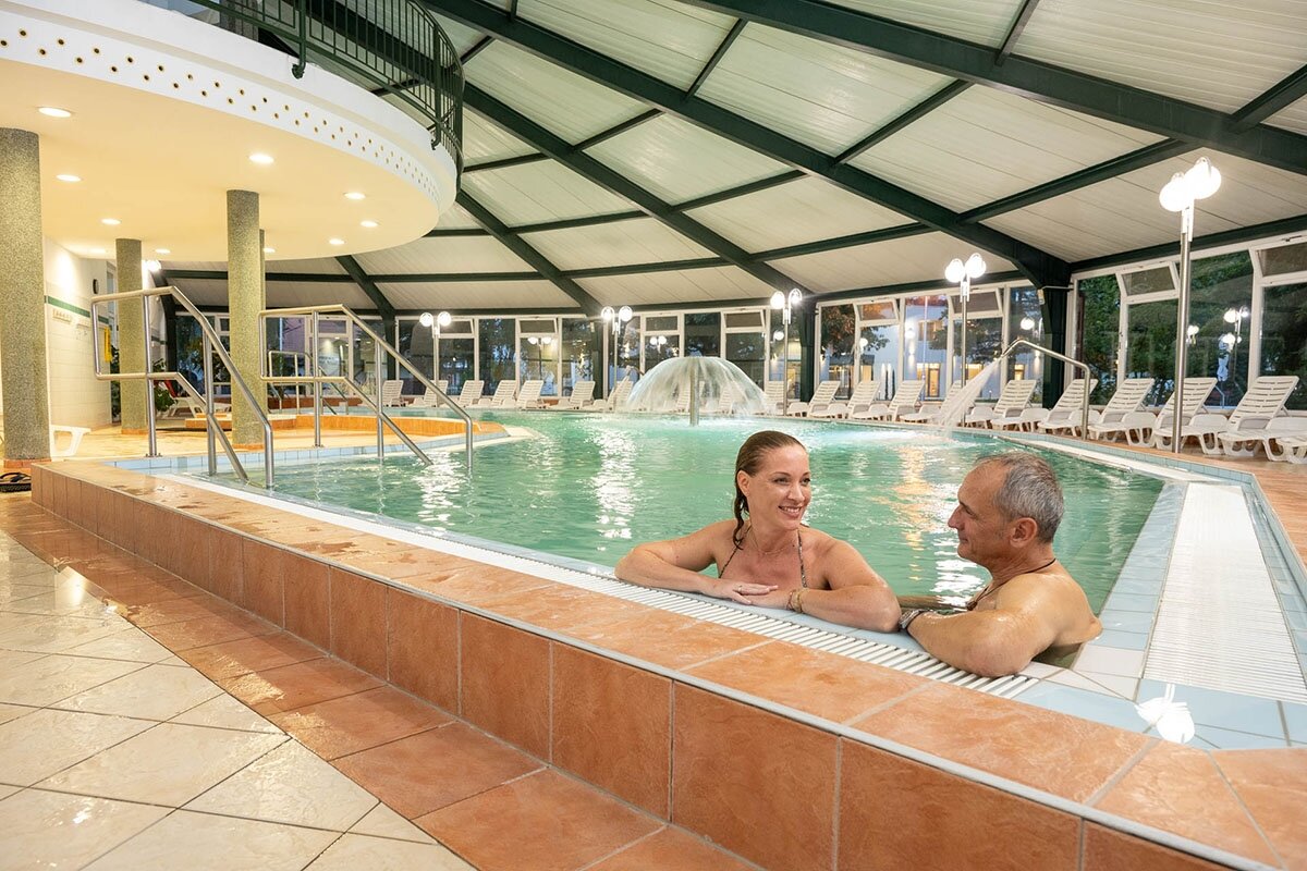 Hotel má vlastní wellness - 2x termální jacuzzi, finská sauna, infra sauna, ochlazovací bazén. Hoteloví hosté navštěvují veřejné termální lázně - 1x léčebný bazén venkovní 36-38 ºC, 1x léčebný bazén venkovní 26-28 ºC, 1x termální bazén venkovní 34-36 ºC, 1x dětský bazén venkovní 26-28 ºC, 1x cvičný bazén venkovní 24-26 ºC, 1x plavecký bazén venkovní 24-26 ºC, 1x wellness bazén krytý 30-32 ºC, 1x termální bazén krytý 36-37 ºC.