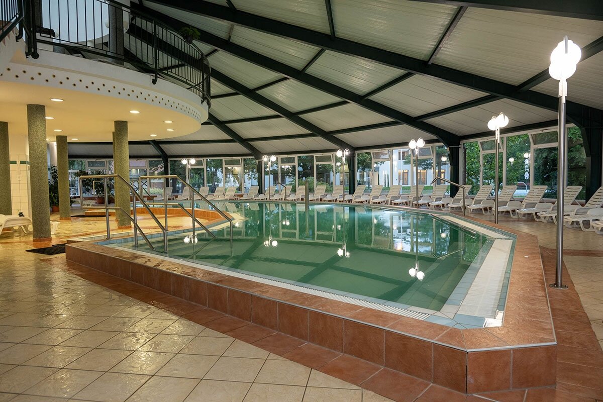 1x léčebný bazén venkovní 36-38 ºC, 1x léčebný bazén venkovní 26-28 ºC, 1x termální bazén venkovní 34-36 ºC, 1x dětský bazén venkovní 26-28 ºC, 1x cvičný bazén venkovní 24-26 ºC, 1x plavecký bazén venkovní 24-26 ºC, 1x wellness bazén krytý 30-32 ºC, 1x termální bazén krytý 36-37 ºC