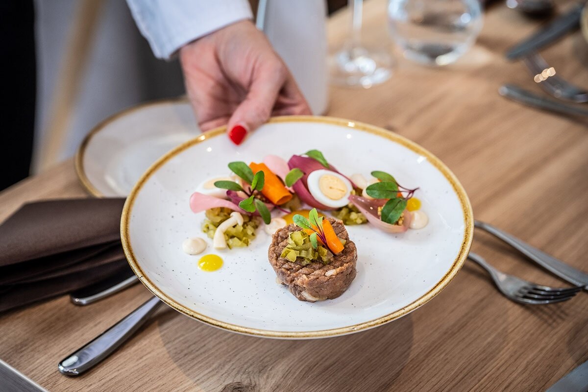 Klimatizovaná restaurace nabízí snídaně formou bufetu a večeře formou 3chodového menu. Recepce 24 hodin, Wi-Fi zdarma, parkoviště zdarma.