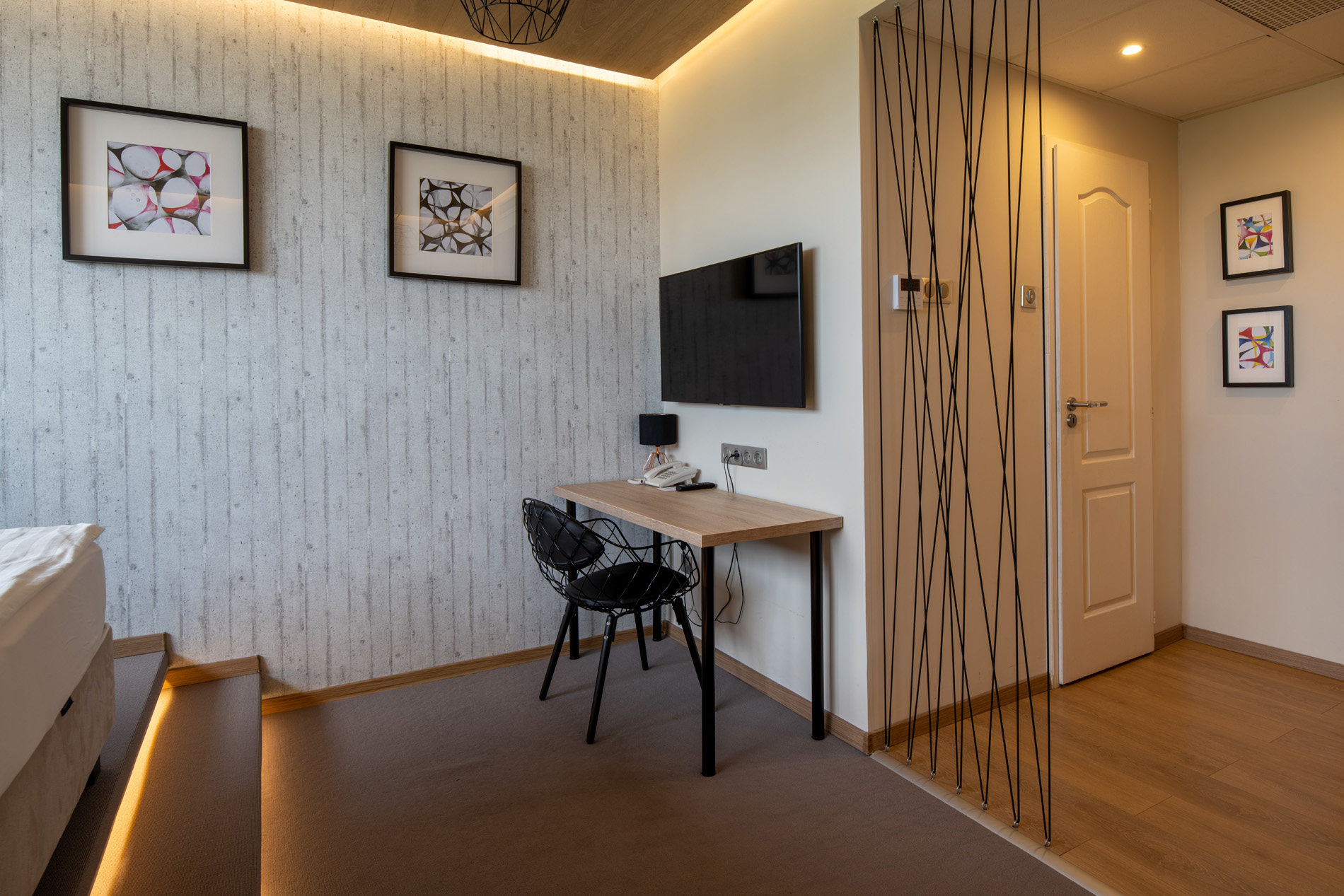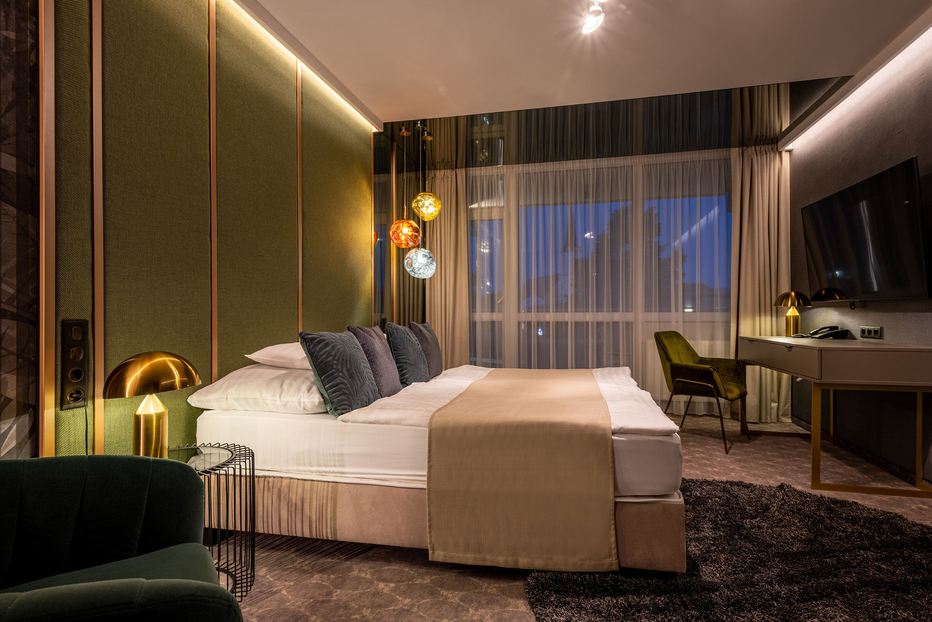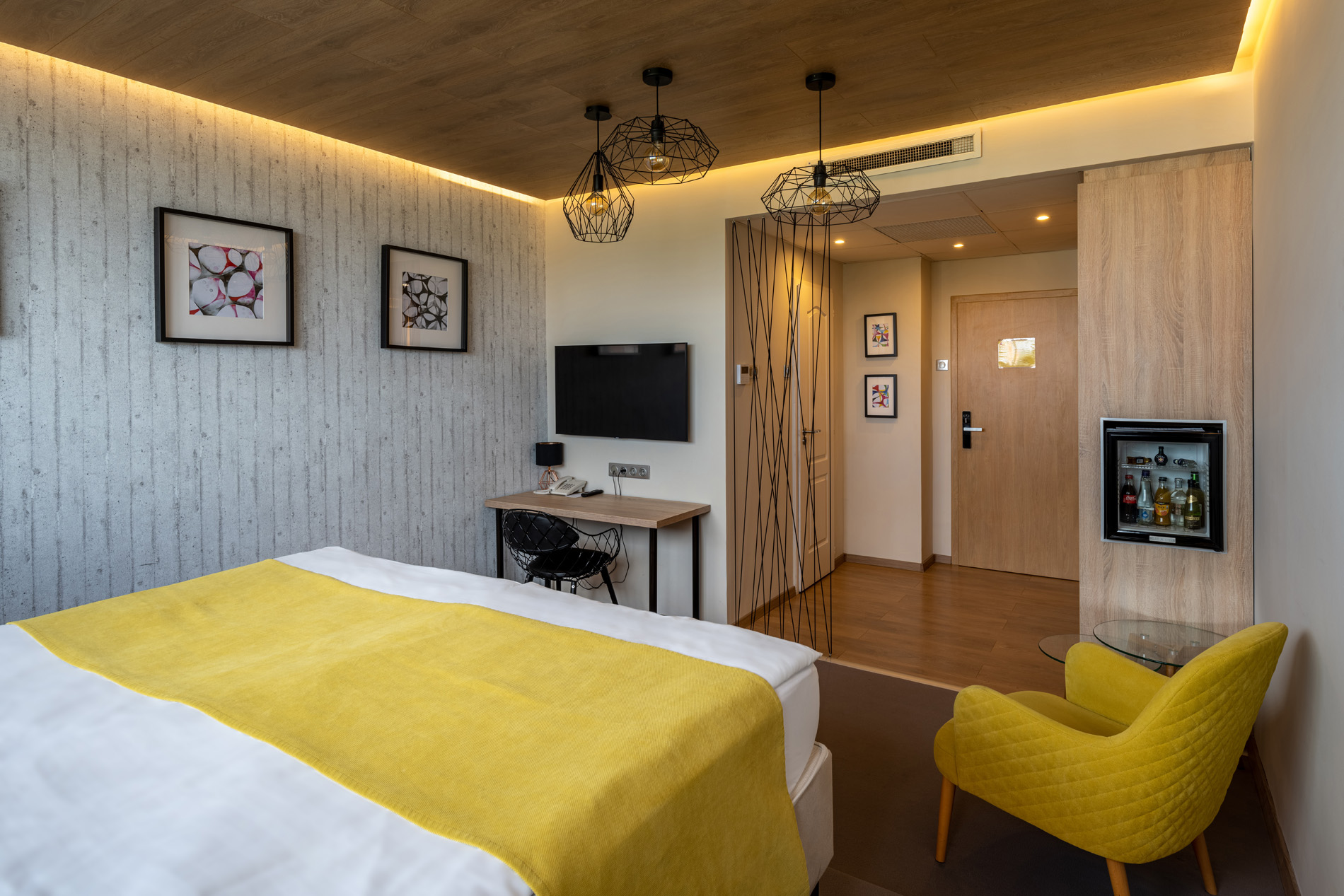 Hotel nabízí 2 lůžk. pokoje SUPERIOR (29 m²) 2. patro – klimatizace, koupelna se sprchou, LED TV, telefon, Wi-Fi, trezor, mini-bar, výhled na Zemplínské hory nebo historickou hradní čtvrť a každý pokoj má balkon.