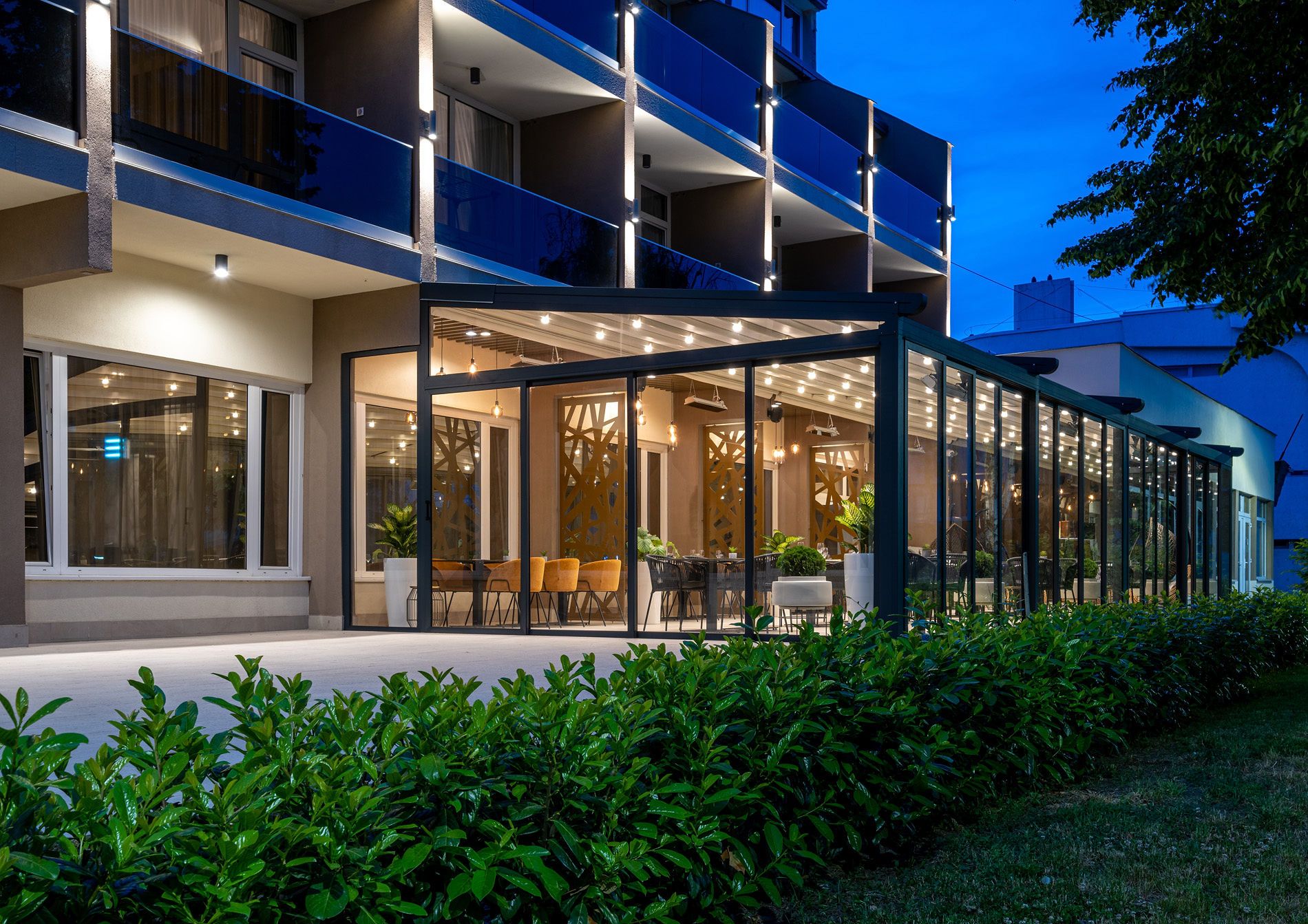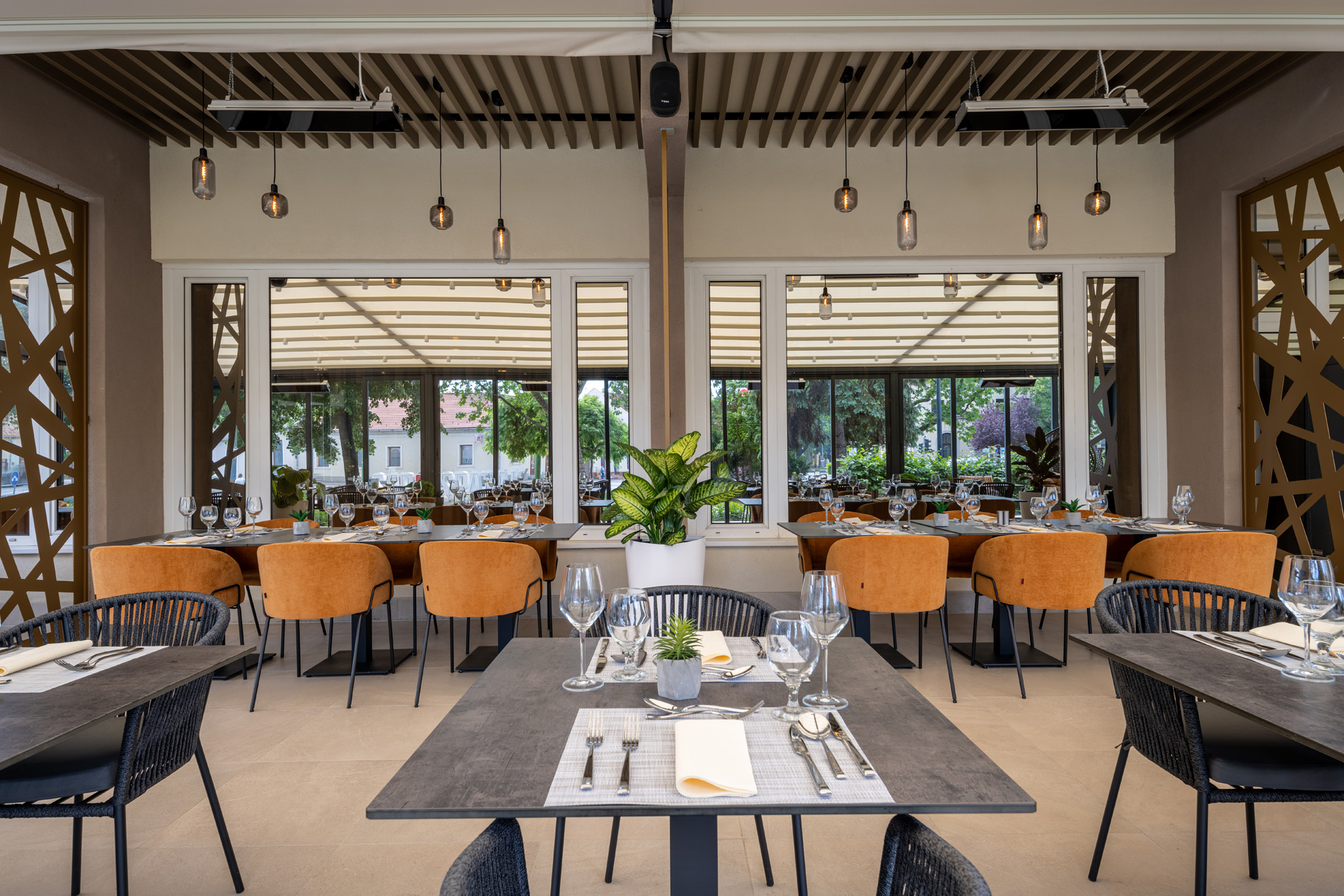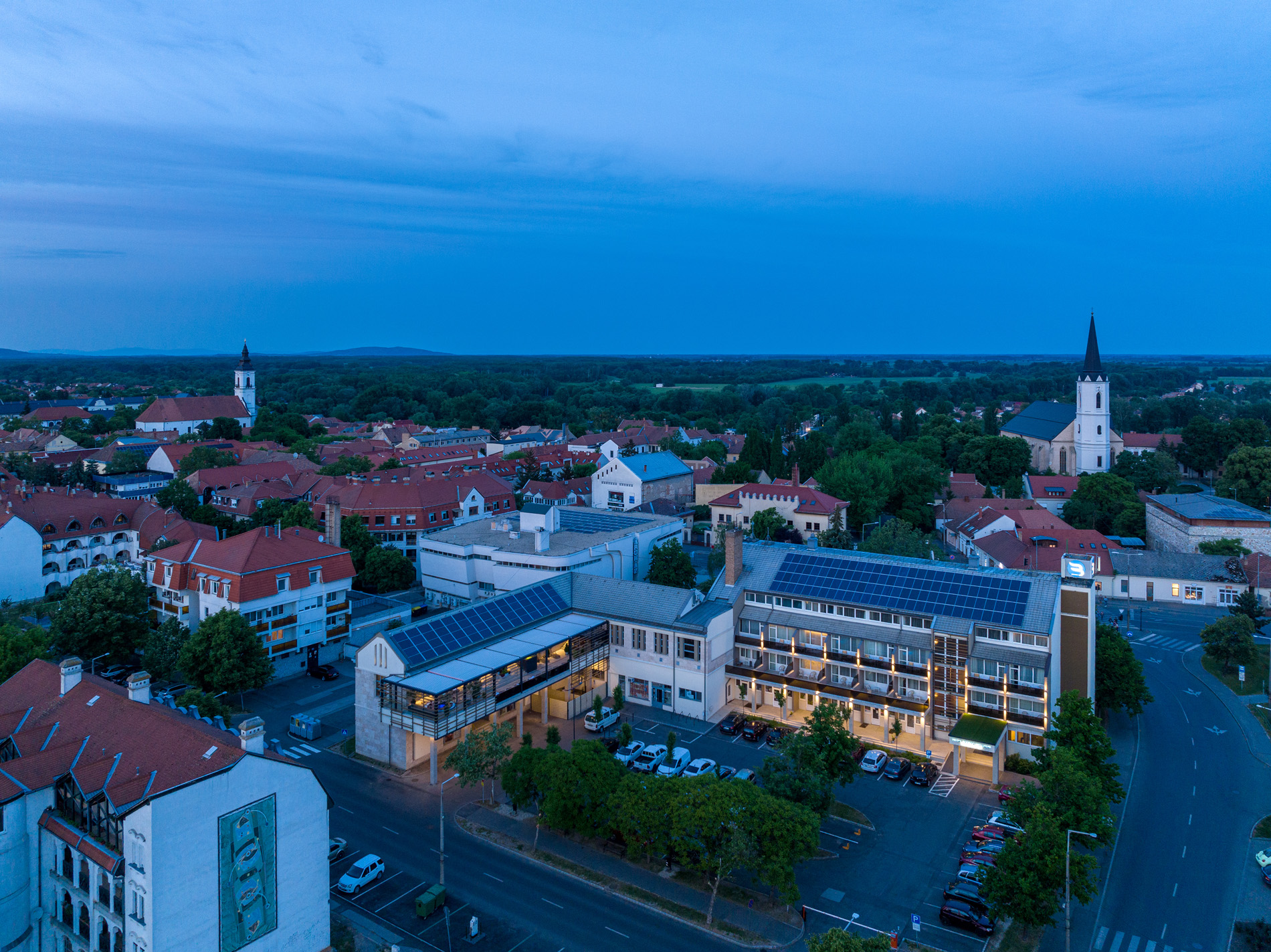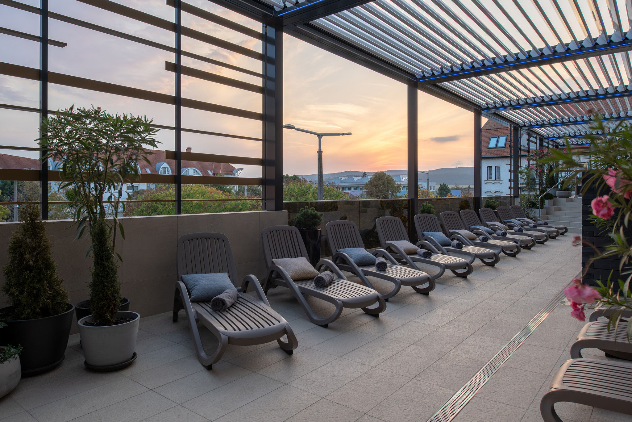 V přízemí hotelu se nachází klimatizovaná restaurace Bodrog a nabízí tradiční maďarskou i mezinárodní kuchyni formou bufetu. Terasa Helios má výhled na kompletně zrekonstruovaný okrasný park vedle hotelu, díky čemuž je jedním z oblíbených míst k pobytu hostů. Díky moderní, plně motorizované střeše a posuvným proskleným stěnám si hosté mohou po celý rok užívat nádherné panorama centra města s výhledem na baziliku. Na terase se podávají speciality typické pro řeckou gastronomii a hosté si mohou vybrat ze široké nabídky vín. Recepce, výtah, hlídané parkoviště.
