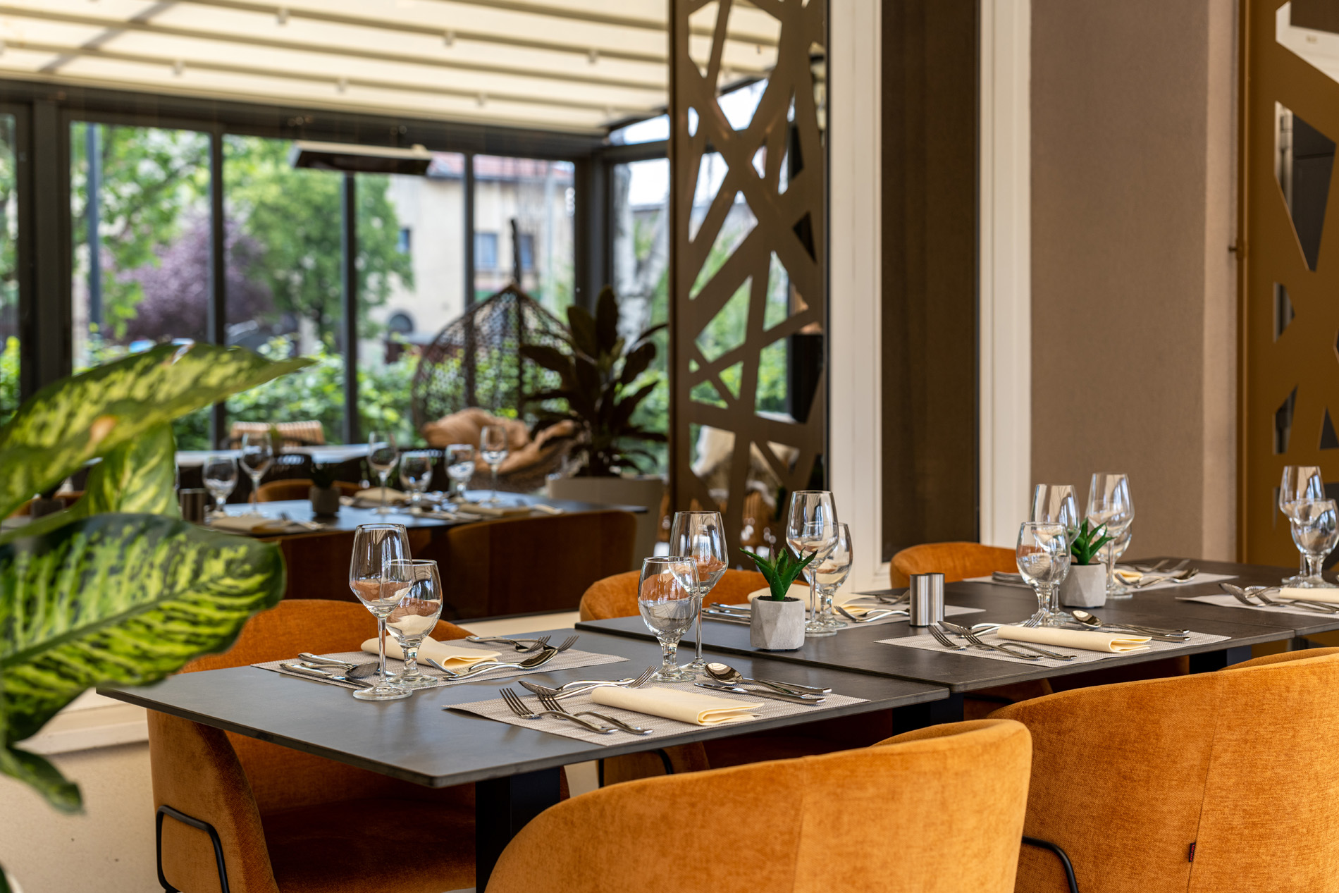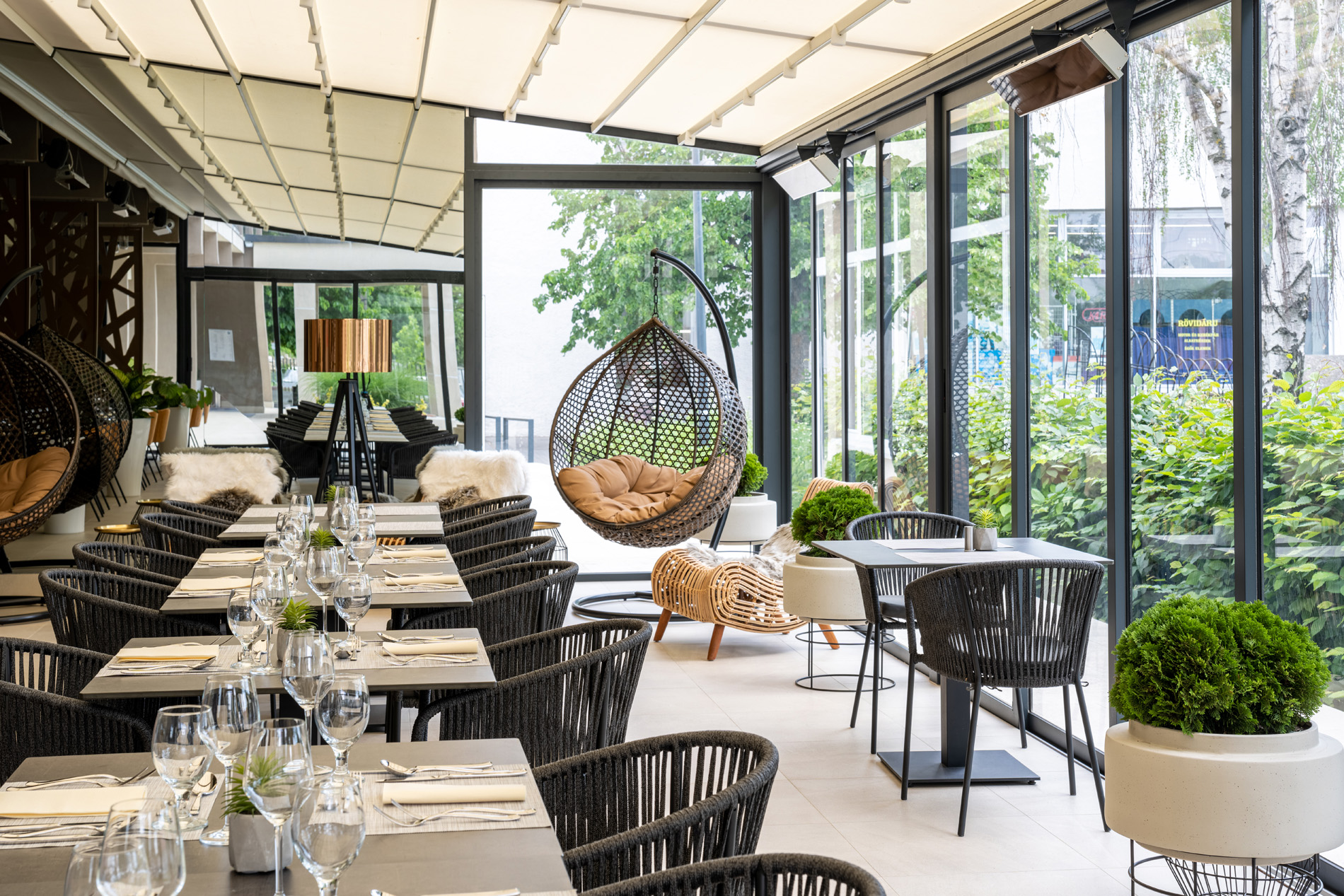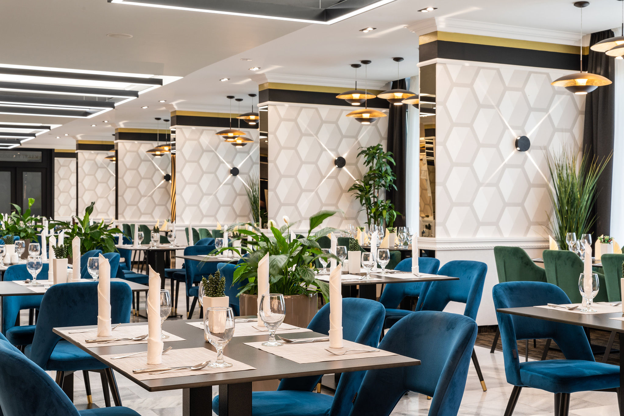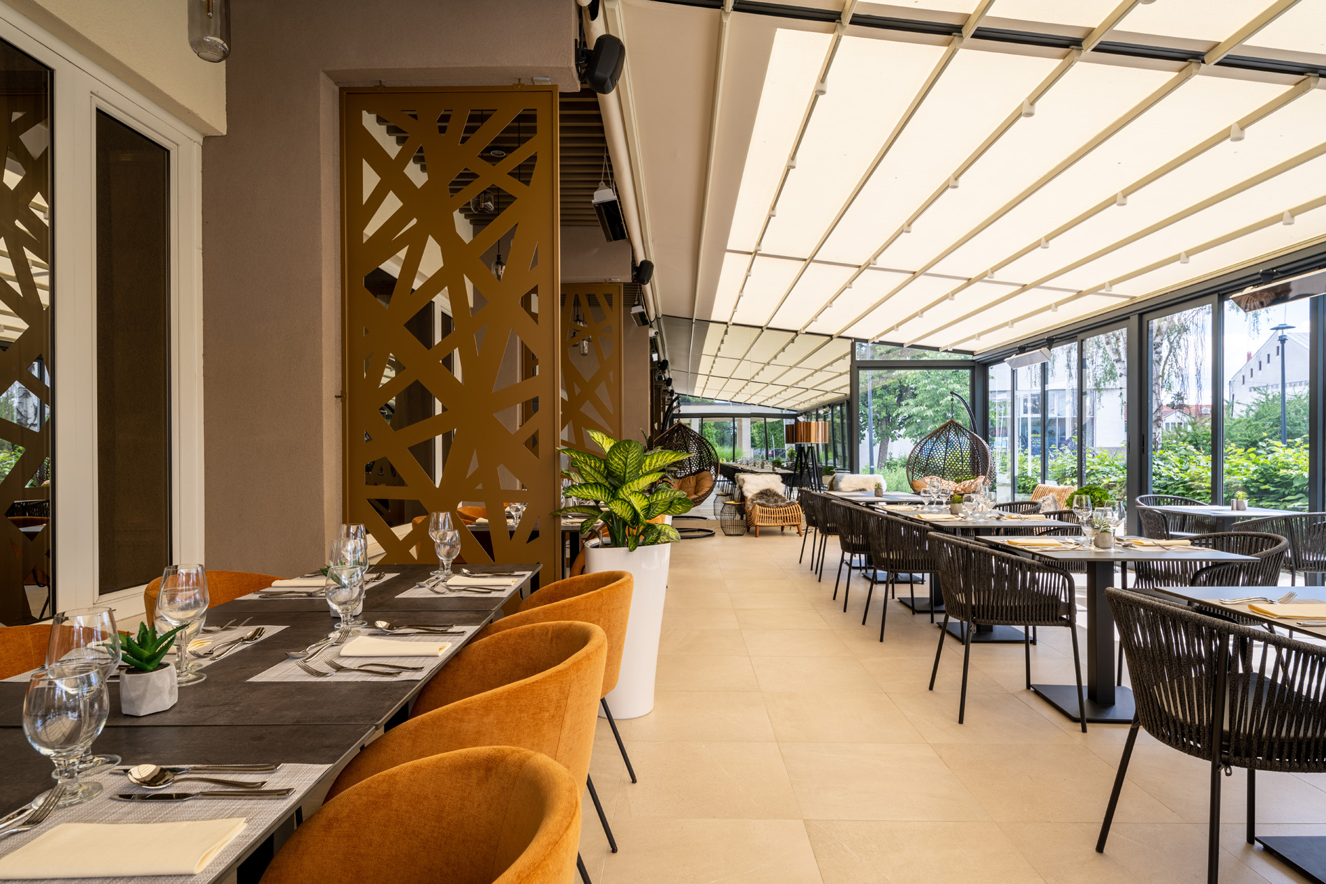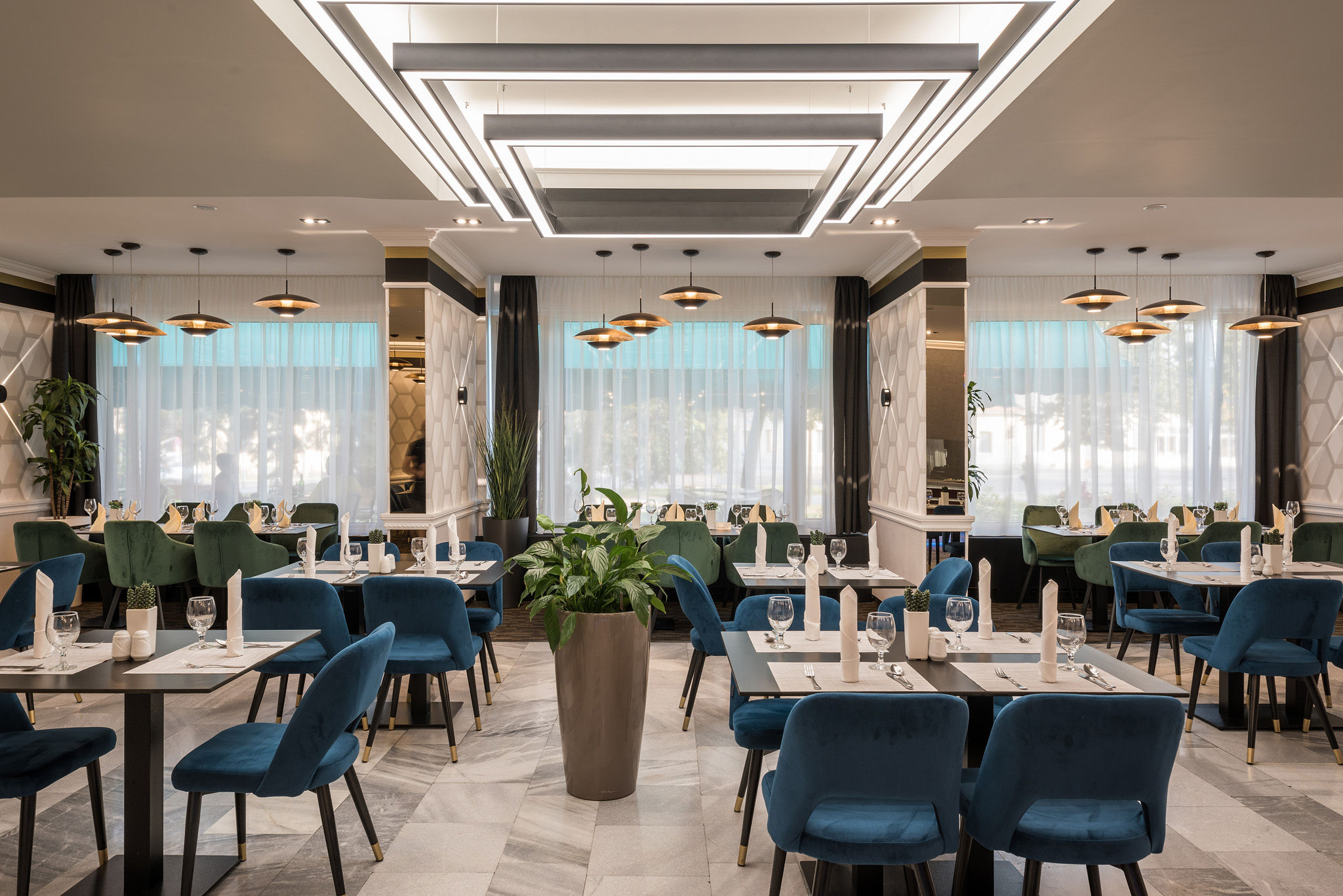 V přízemí hotelu se nachází klimatizovaná restaurace Bodrog a nabízí tradiční maďarskou i mezinárodní kuchyni formou bufetu. Terasa Helios má výhled na kompletně zrekonstruovaný okrasný park vedle hotelu, díky čemuž je jedním z oblíbených míst k pobytu hostů. Díky moderní, plně motorizované střeše a posuvným proskleným stěnám si hosté mohou po celý rok užívat nádherné panorama centra města s výhledem na baziliku. Na terase se podávají speciality typické pro řeckou gastronomii a hosté si mohou vybrat ze široké nabídky vín. Recepce, výtah, hlídané parkoviště.